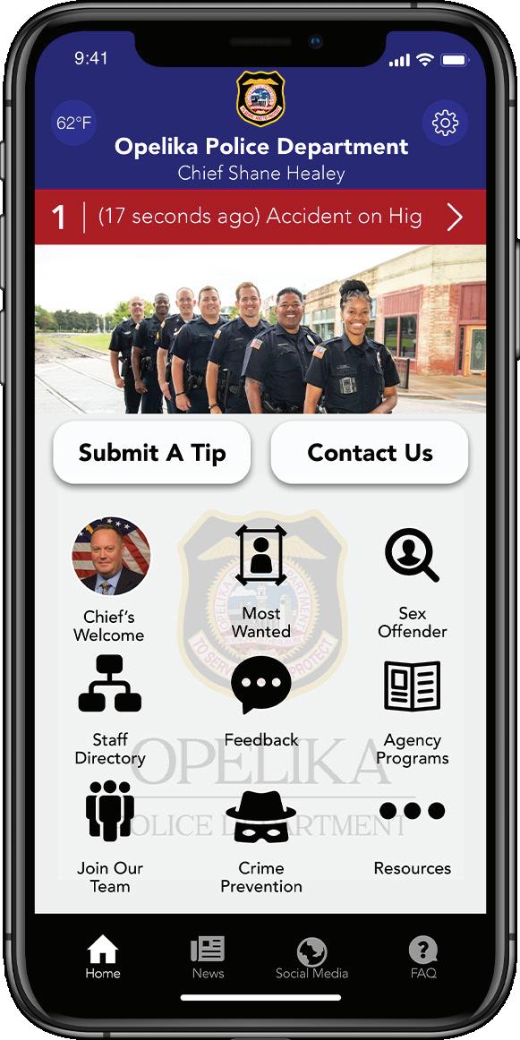 @opelikapd CONNECT WITH US 501 S. 10th Street, Opelika, AL 36801 334.705.5200 View online at opelikapd.org • Submit a Tip • Push Notifications • Agency Programs • Most Wanted • Additional Resources OPELIKA POLICE DEPARTMENT F E ATUR E S M ob i le Ap p
