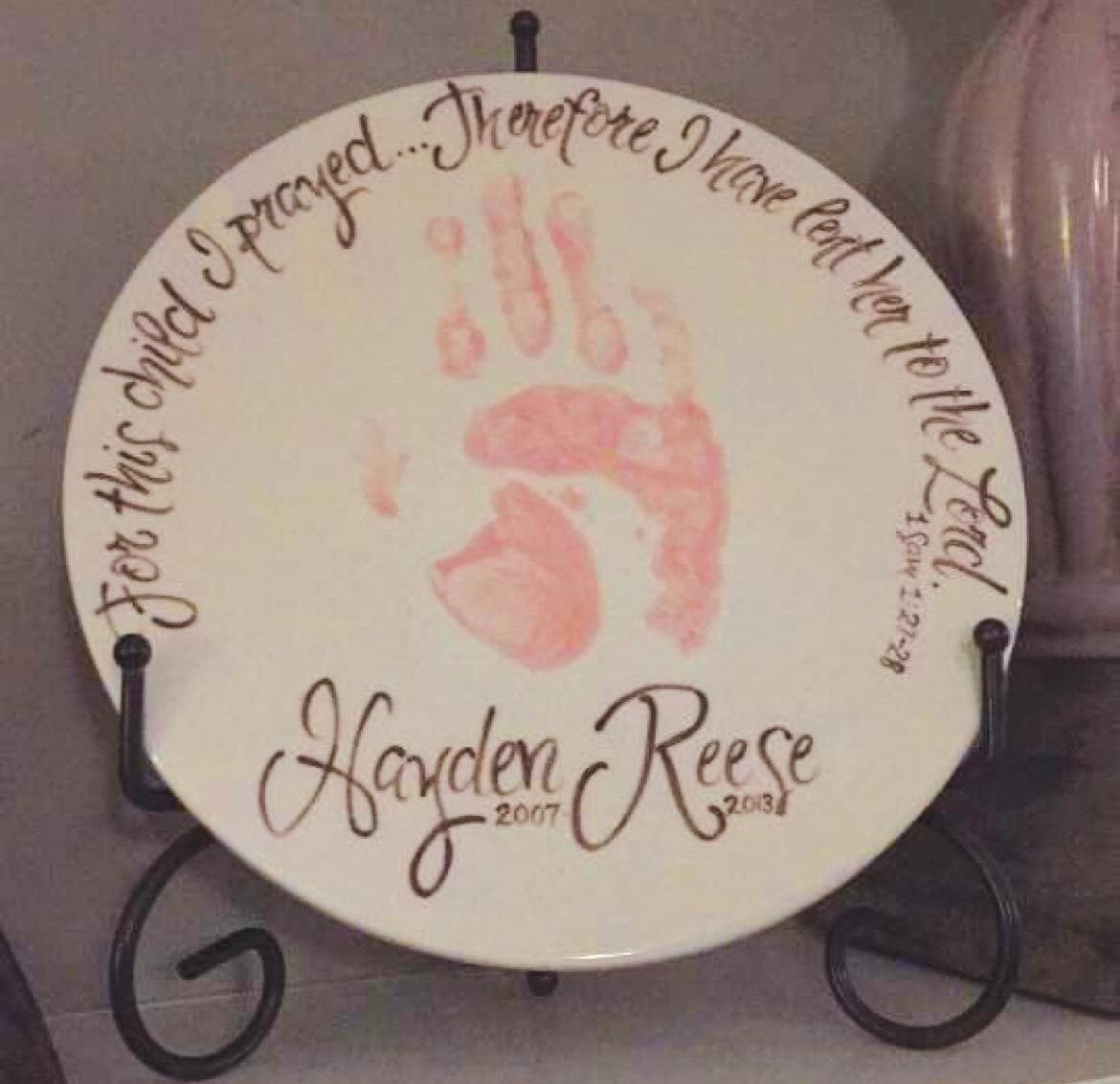 Later on, Conner was able to add words and a Bible verse that his parents wanted on the plate.