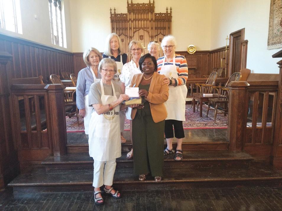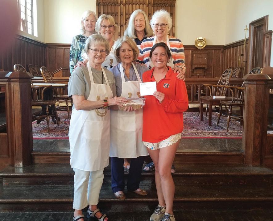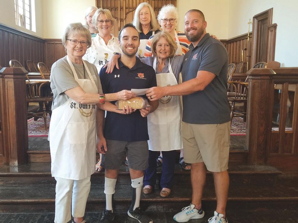 St. Dun's Buns of St. Dunstan's Episcopal Church recently donated to three organizations from donation proceeds of their baked goods. St. Dun's Buns is a baking-for-a-donation group that benefits their community outreach program. Hannah Houde represented Wheelchair Tennis at Auburn University (right); Rob Taylor represented Wheelchair Basketball at Auburn University along with Sam, a team member who has just returned from Thailand playinginternationally (middle); and Tiffany Gibson represented Girls STEPS (left).