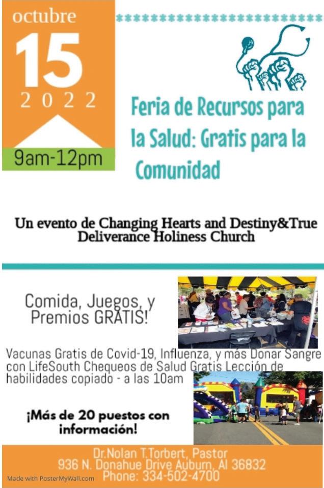 AUBURN — East Alabama Medical Center (EAMC) and True Deliverance Holiness Church are teaming up to bring back the Changing Hearts and Destiny and True Deliverance Health and Resource Fair and Fall Festival. The event is scheduled to be held at the church from 9 a.m. to noon on Oct. 15. The event is free and open to the public.