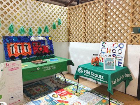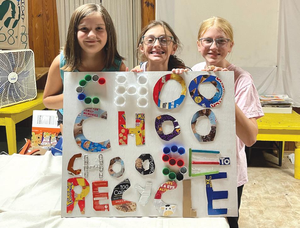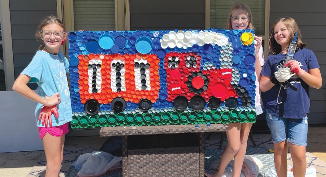 The Bronze Award project was centered on creating art from recycled plastic bottle caps. The project was displayed at the Lee County Fair in Opelika. The girls said they hope to communicate the importance of recy cling and the effects on our environment if we “choose” not to “Re duce. Reuse. Recycle.”