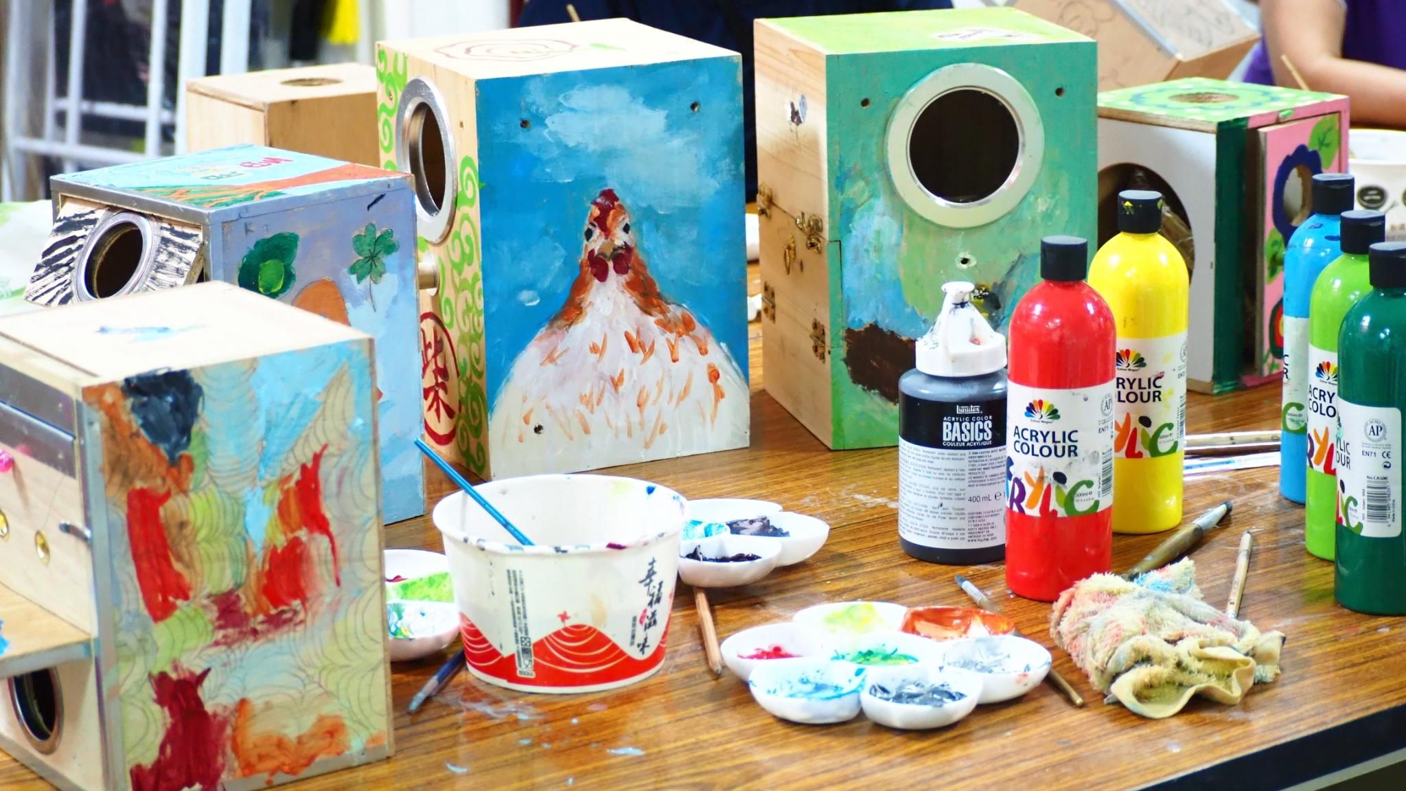 左手香防疫酒精手作課程,使用該地種植的左手香,使居民了解之前種在那邊 的左手香的功效。 鳥窩彩繪活動,串聯居民參與手繪鳥窩課程,讓大家能更在意都市的鳥類之外 也藉此一起完成牆面裝置。