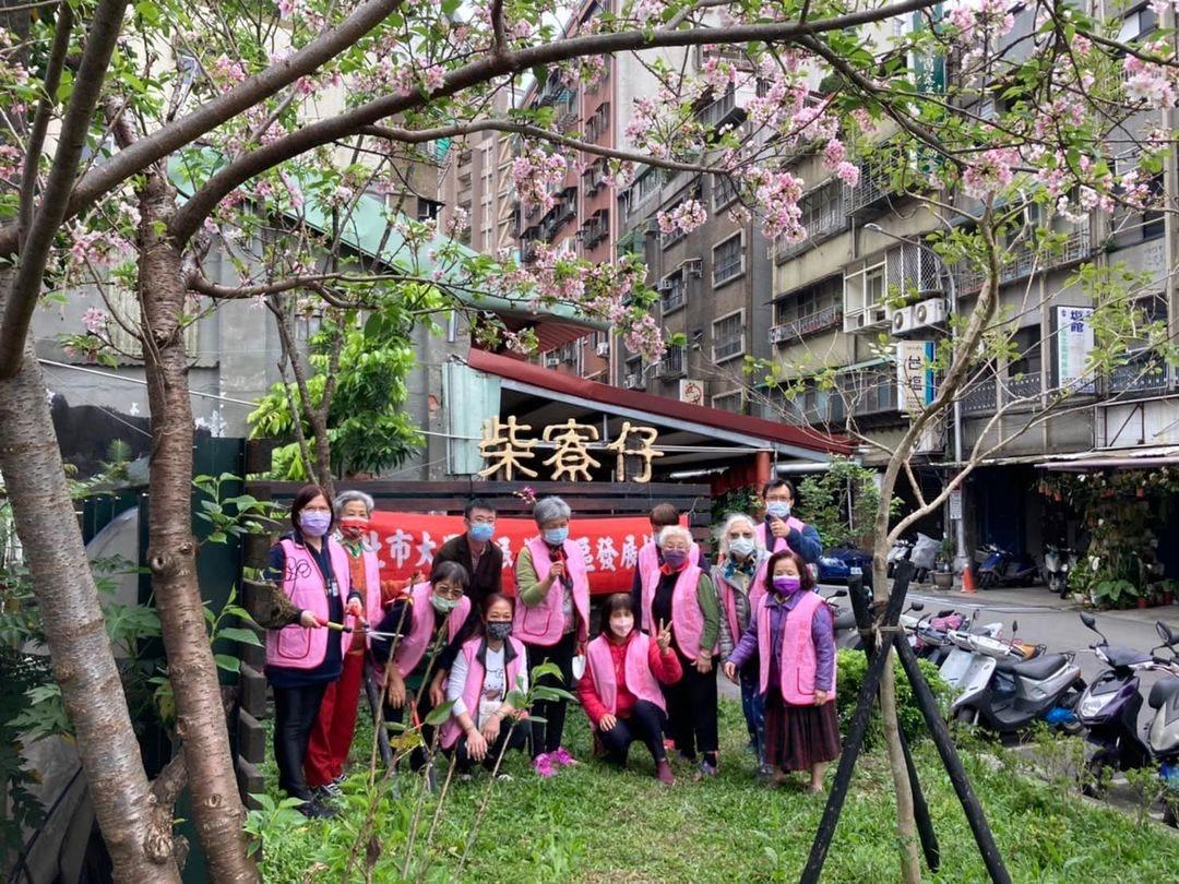賞櫻活動,讓里內志工參與整理環境,讓居民體驗櫻花樹下的休憩活動。 清整過長植栽
