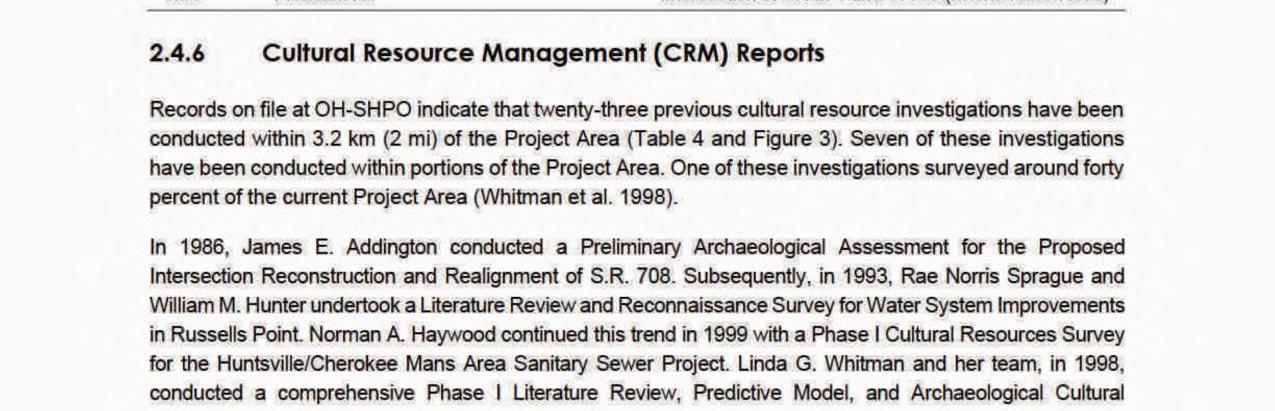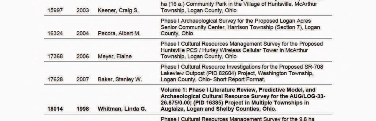 2010 Phase I Cultural Resources Management Survey for the 9.8 ha (24.3 ac) Longview Cove Housing Development in Richland Township, Logan County, Ohio. Prepared by Weller & Associates, Inc. Copy on file at the Ohio History Connection, Columbus, Ohio.
