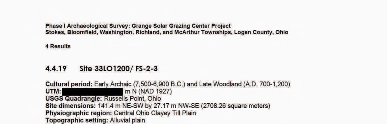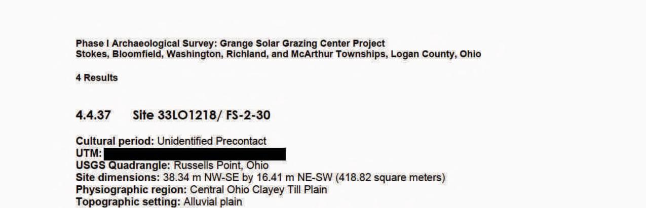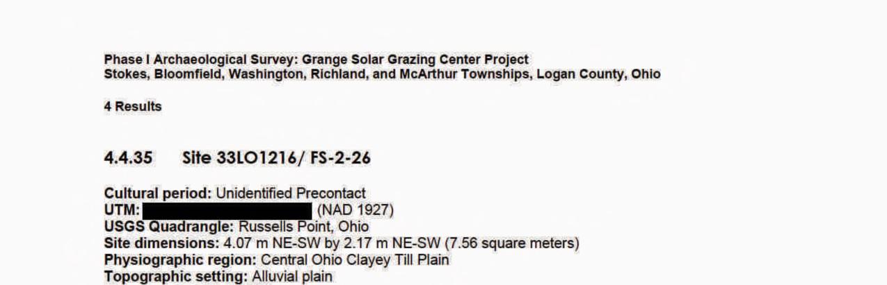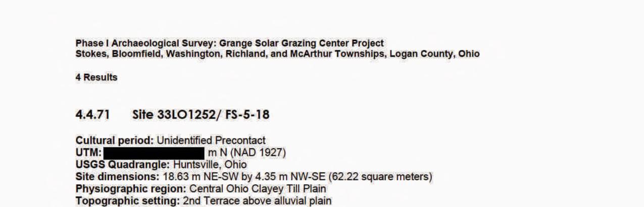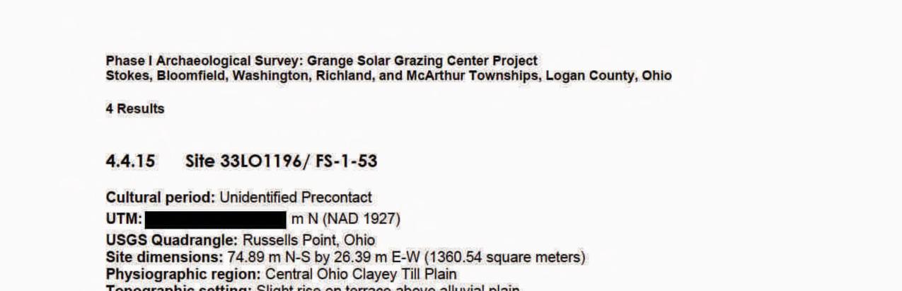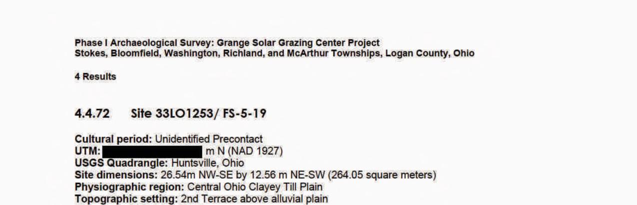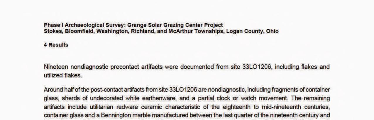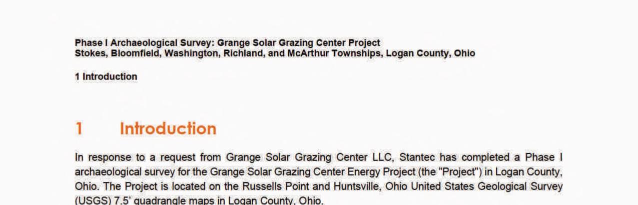 Phase I Archaeological Survey: Grange Solar Grazing Center Project Stokes, Bloomfield, Washington, Richland, and McArthur Townships, Logan County, Ohio