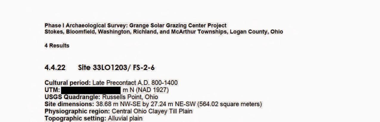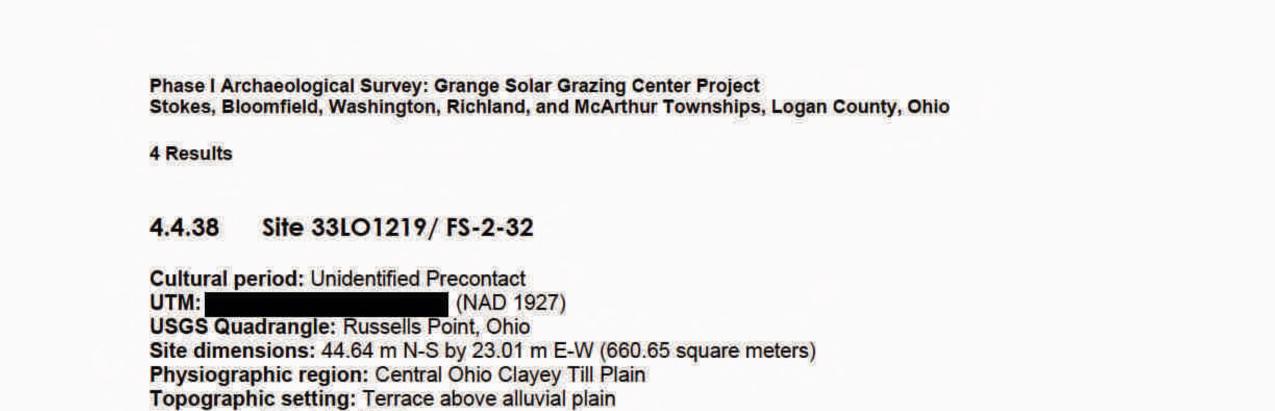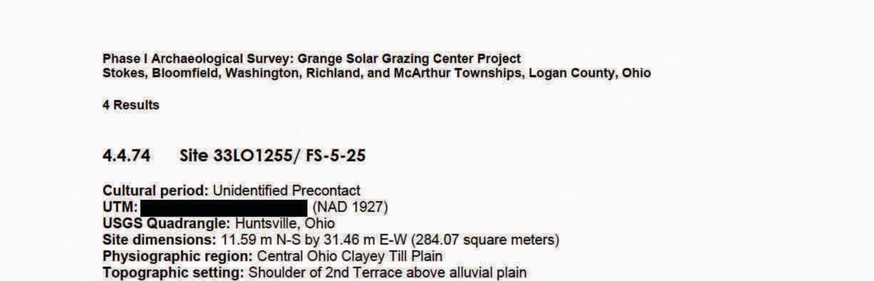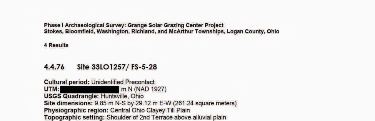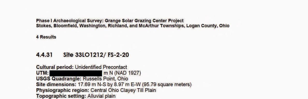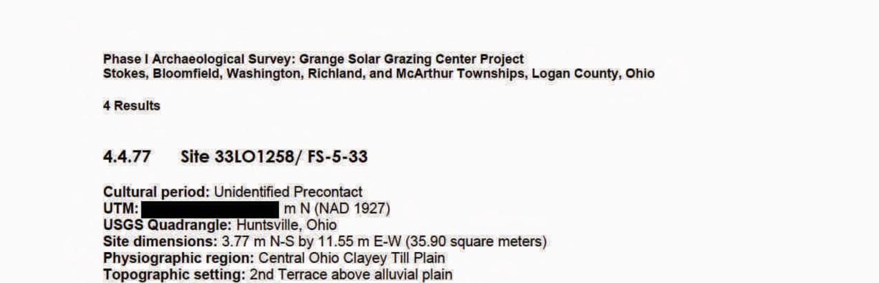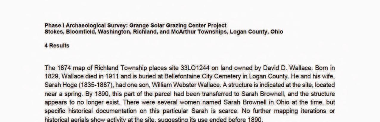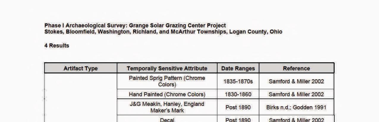 Phase I Archaeological Survey: Grange Solar Grazing Center Project Stokes, Bloomfield, Washington, Richland, and McArthur Townships, Logan County, Ohio