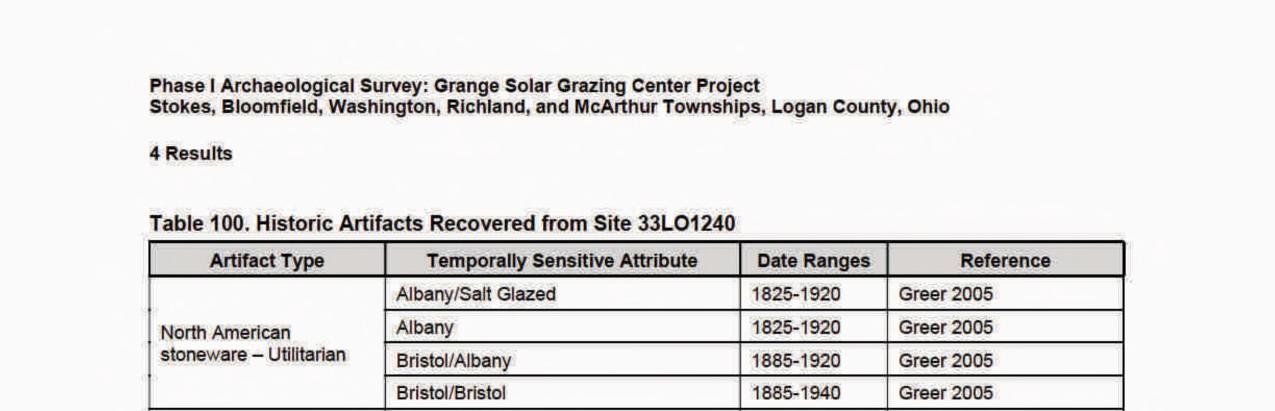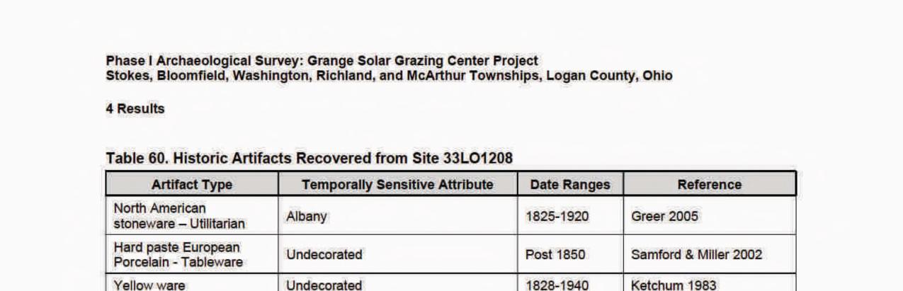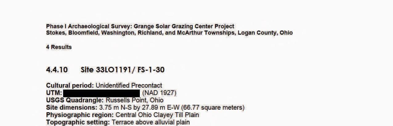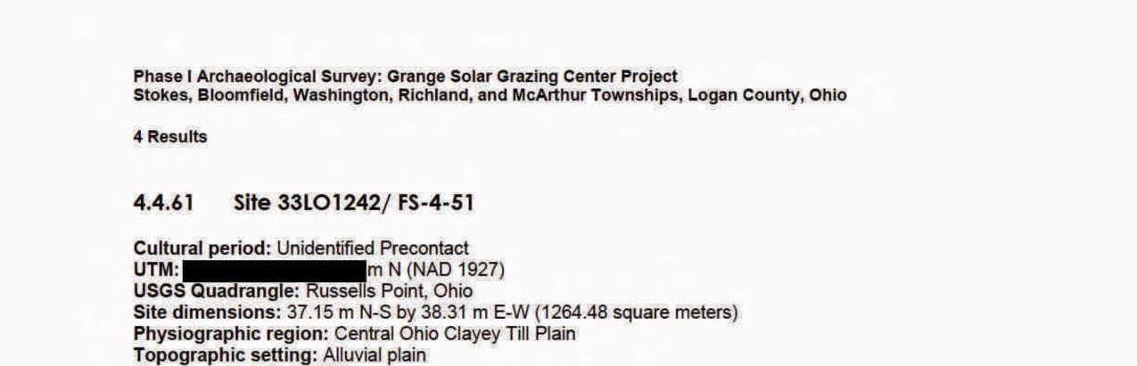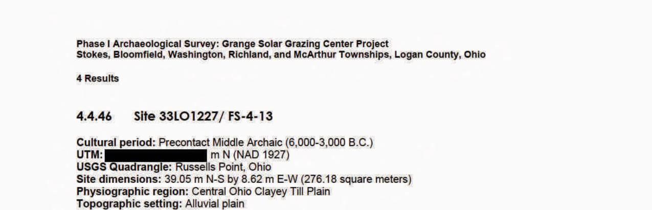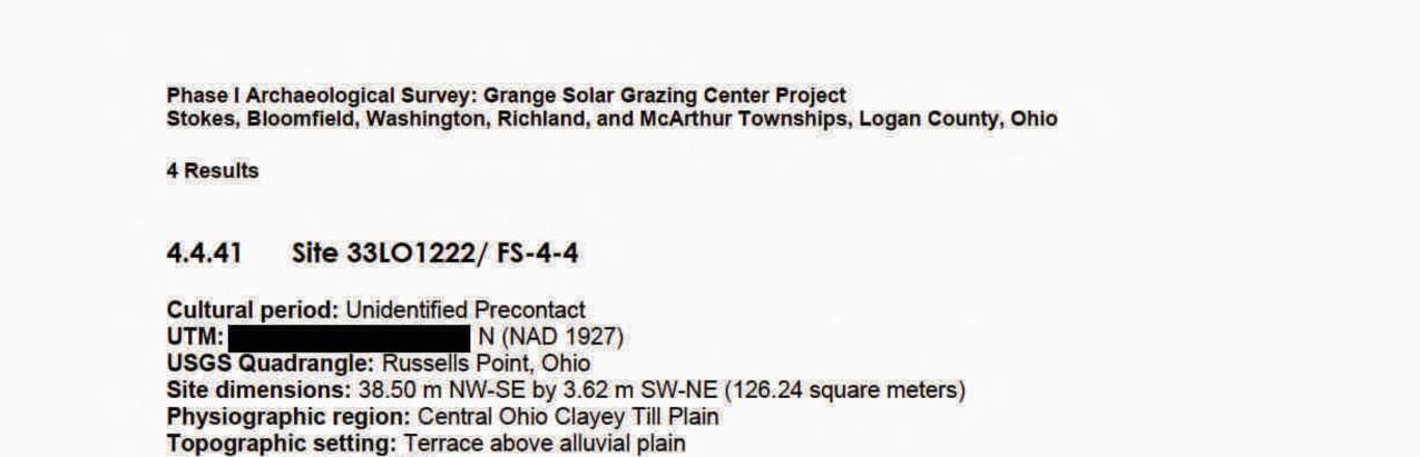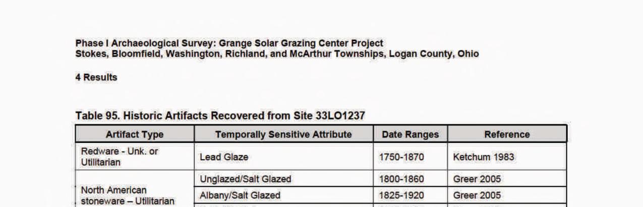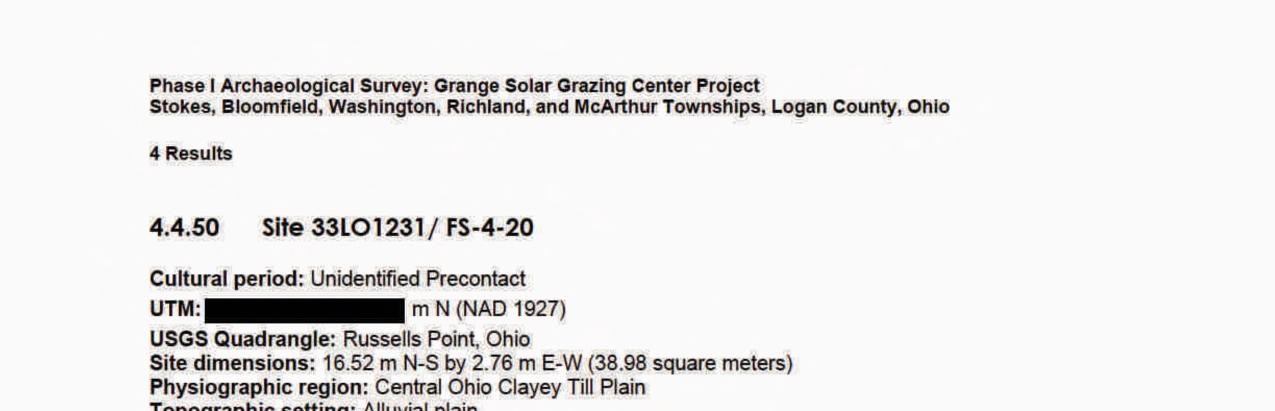 Phase I Archaeological Survey: Grange Solar Grazing Center Project Stokes, Bloomfield, Washington, Richland, and McArthur Townships, Logan County, Ohio