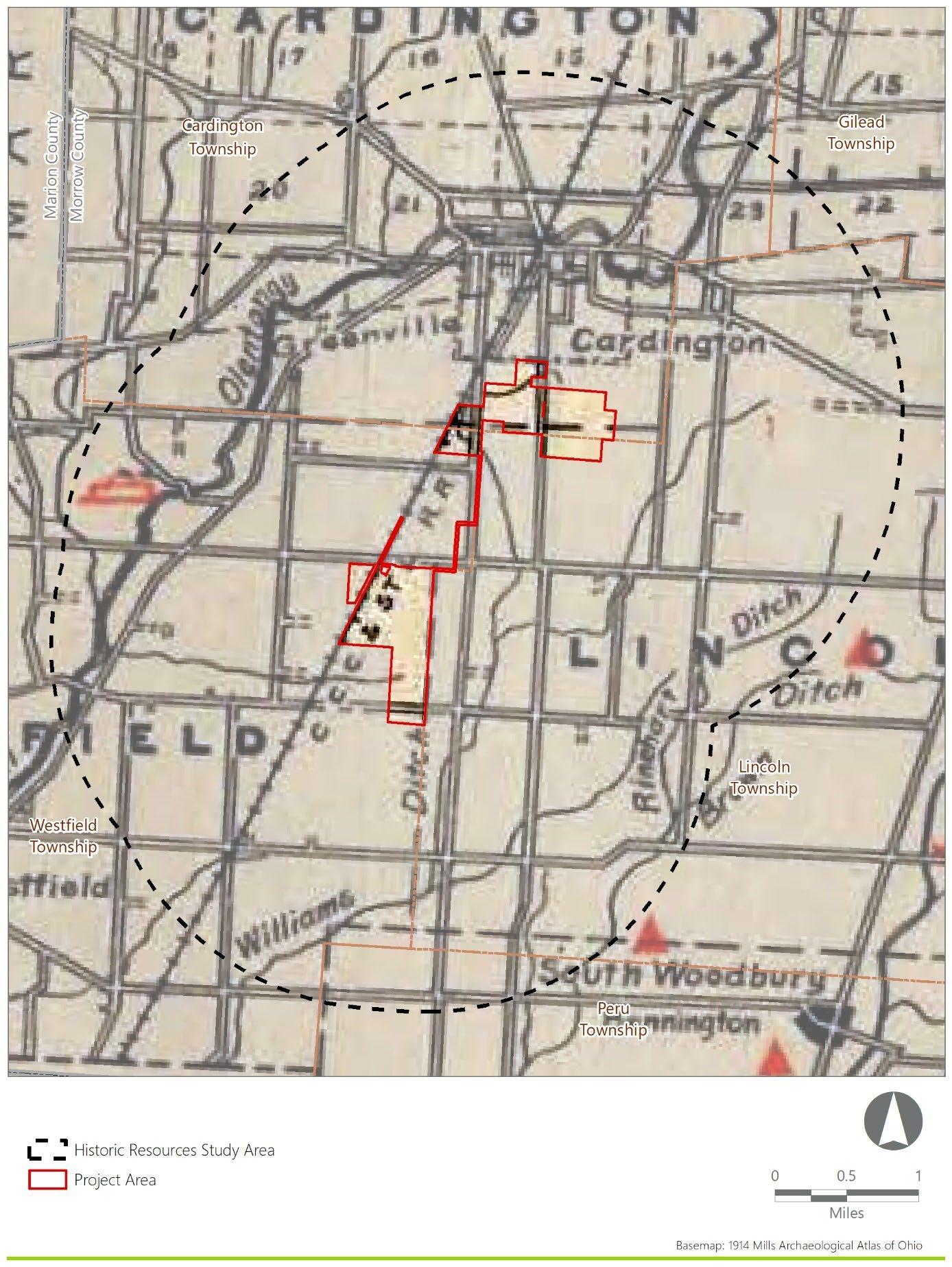 The area within 2 miles of the Project Area which accounts for potential visual effects on historical resources. The Historic Resources Study Area includes portions of Gilead and Peru Townships, Morrow County, Ohio.
