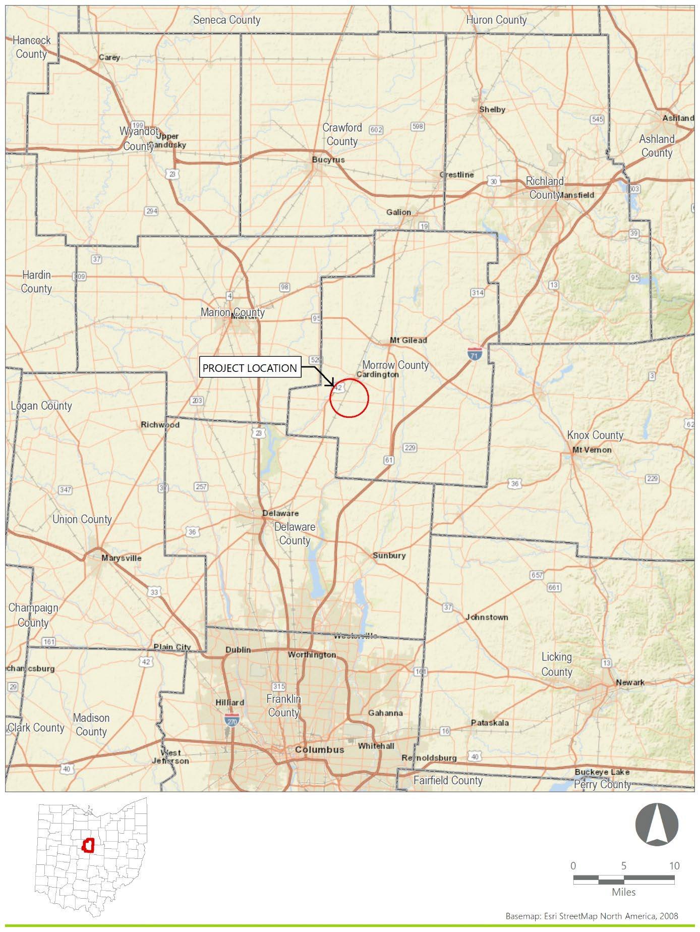The Project is a proposed solar-powered electric generating facility located in Cardington, Lincoln, and Westfield Townships, Morrow County, Ohio (Figure 1 and Figure 2). The following terms are used throughout this document to describe the proposed action: