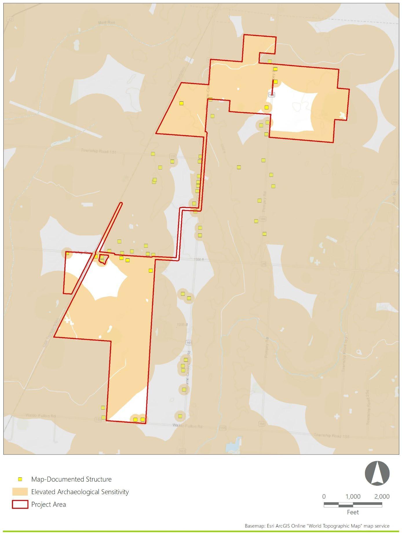 within Cardington will not be visually impacted by the proposed Project Therefore, EDR proposes an appropriate APE for Indirect Effects for the Project includes those areas within a 2-mile buffer of the Project Area with potential visibility of the Project, as defined by the DSM viewshed results (Figure 10).