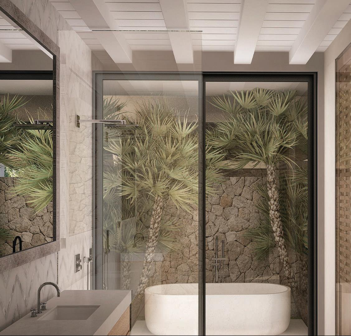 Designed with hanging toilets, premium finishes, two bathtubs, and an additional outdoor shower near the swimming pool. The villa includes a total of six bathrooms.