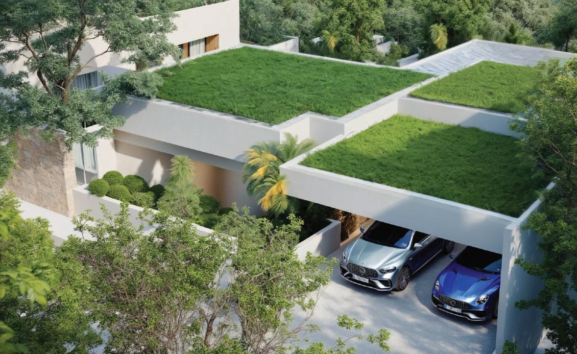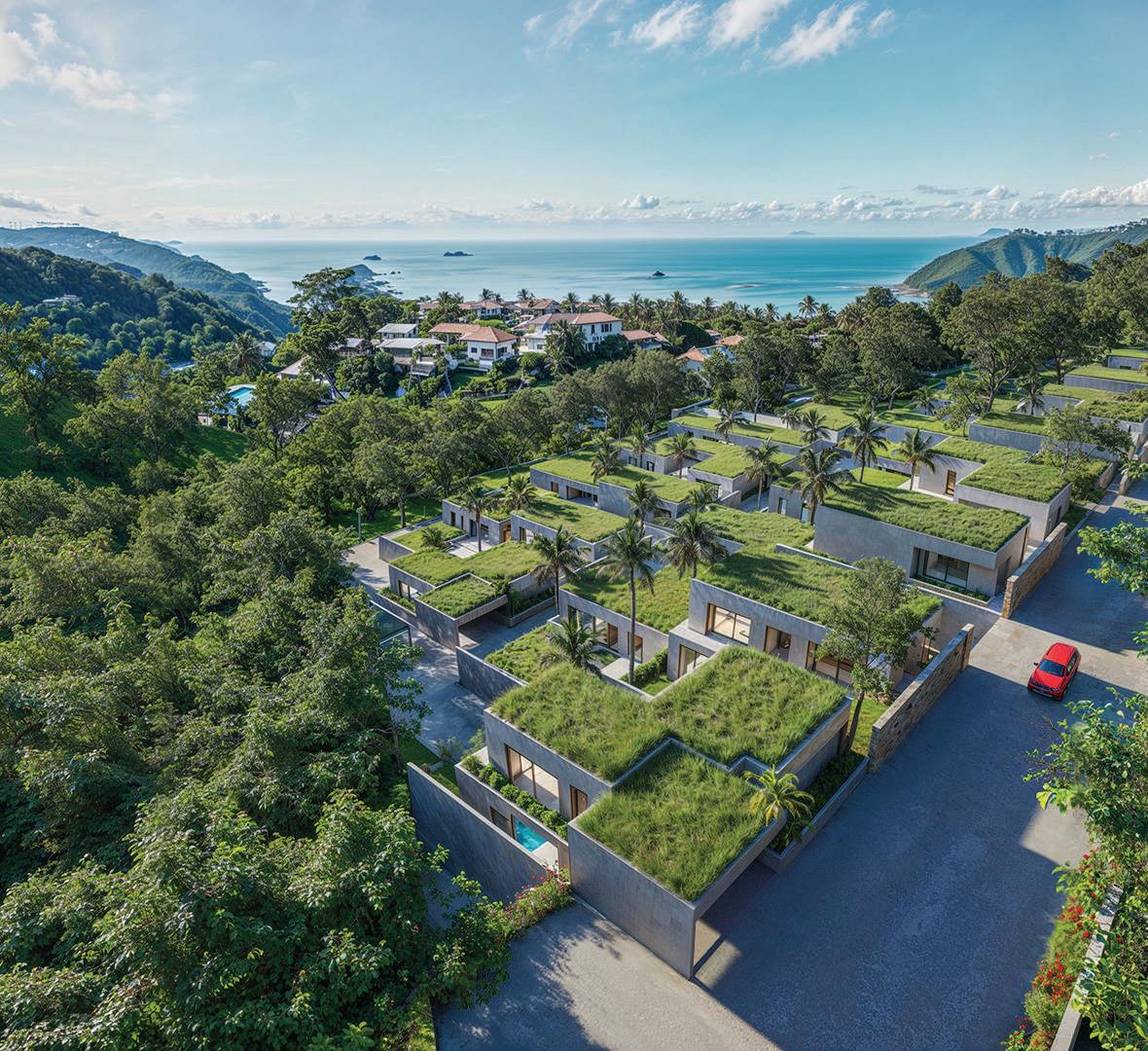 The villas seamlessly blend with nature through lush green roofs & beautifully designed gardens.