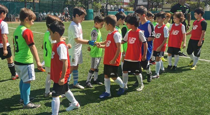 Vélez milita en Infantil. El saludo de los integrantes de los equipos antes del juego en Júnior.