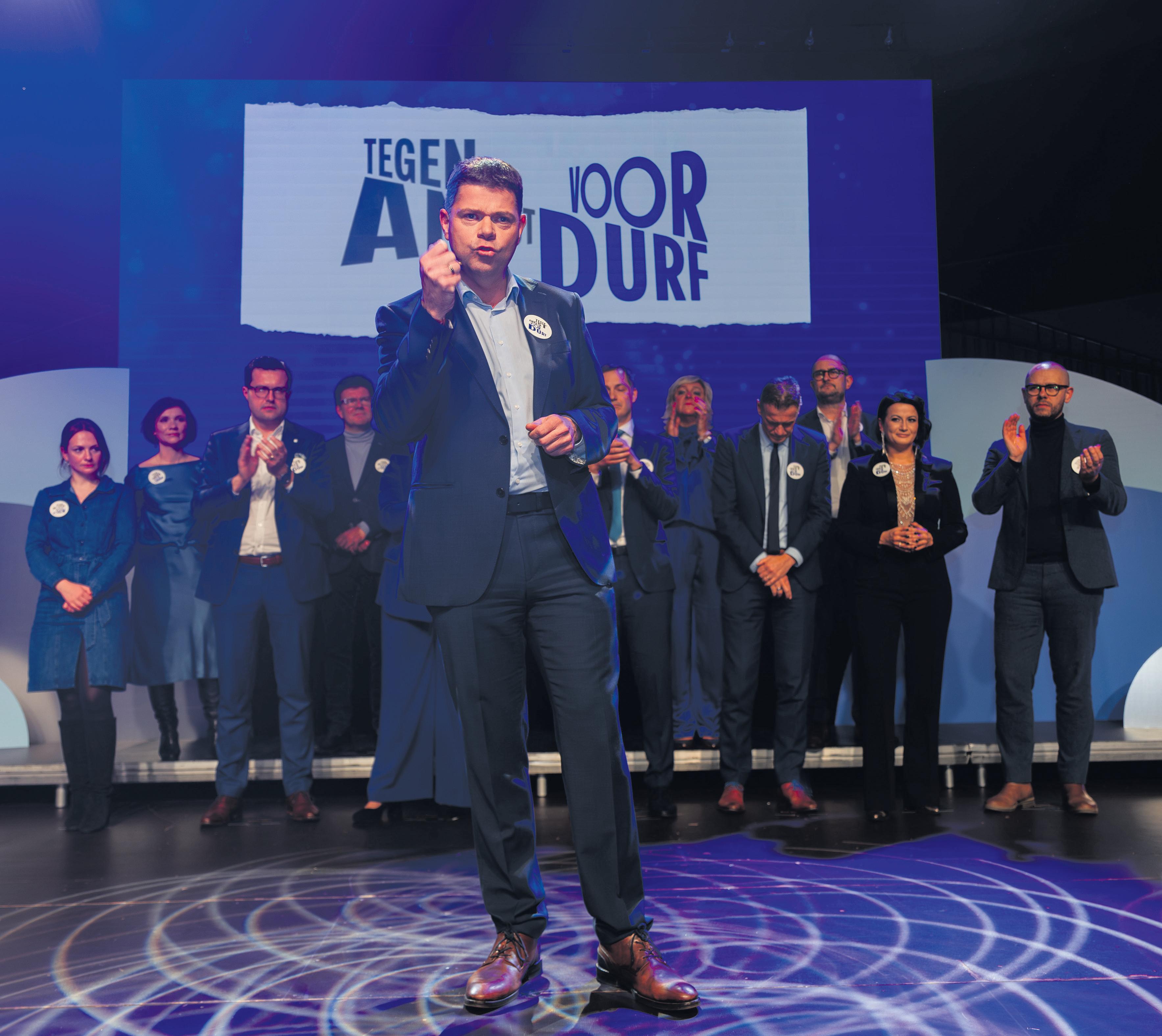keren en voor aanpakken. Tegen roepers en voor doeners. Tegen de schuld bij een ander leggen, voor kijken wat je zelf beter kan doen. “Wij zijn niet de partij van excuses zoeken, wij zijn de partij van oplossingen zoeken. We gaan niet luisteren naar zij die ons land opnieuw in stilstand willen zetten. Wij willen samenwerken zodat mensen er beter voor staan. Dat is wat we gaan doen”, aldus De Croo.