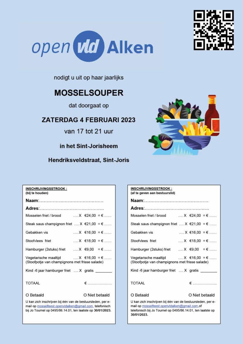 Mosselfeest Open Vld Alken op 4 februari 2023