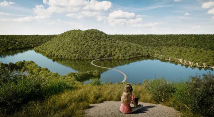 Binnenkort starten in Maasmechelen de werken rond ‘Fietsen tussen Terhills’, een sierlijke, zwevende fietsbrug over de plas. Fietsen tussen Terhills’ past in onze beleidsplannen rond het positioneren van Limburg als hoogwaardige toeristische bestemming Deze pontonbrug gaat de attractiviteit van een heel waardevolle Limburgse plek verder onderstrepen We doen