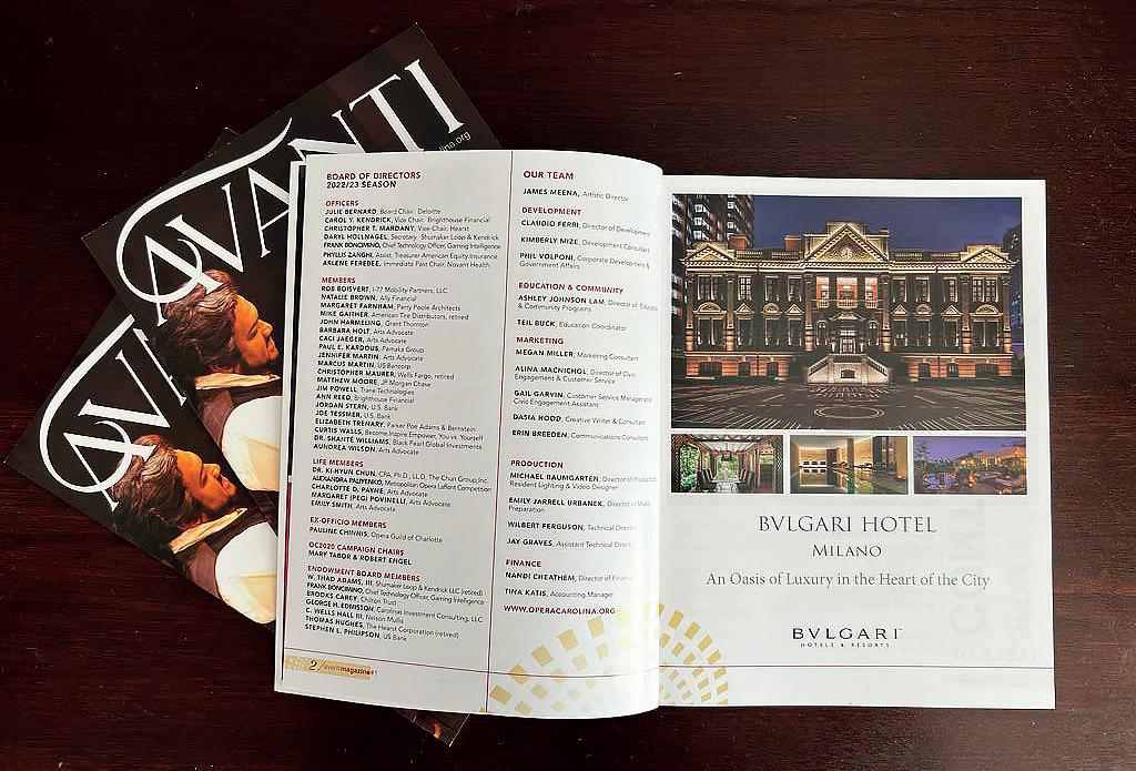 AVANTI includes interviews with Greater Charlotte creatives, insights into the great operas, a Sponsor Spotlight and much more.