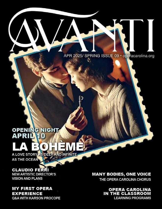AVANTI includes interviews with Greater Charlotte creatives, insights into the great operas, a Sponsor Spotlight and much more.