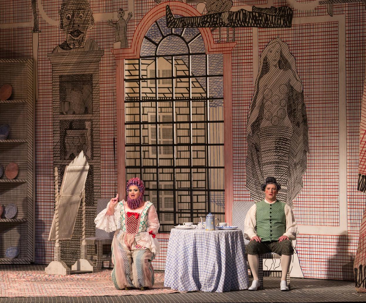 It is also a spectacle, with grand sets and costumes and a large chorus. Our performances mark the 50th anniversary of David Hockney’s iconic production which premiered in 1975 at the Glyndebourne Festival in the United Kingdom. We are honored to welcome Shannan Kelly, the Director of David Hockney, Inc., and George Snyder, David Hockney’s longtime archivist, as our guests on opening night.