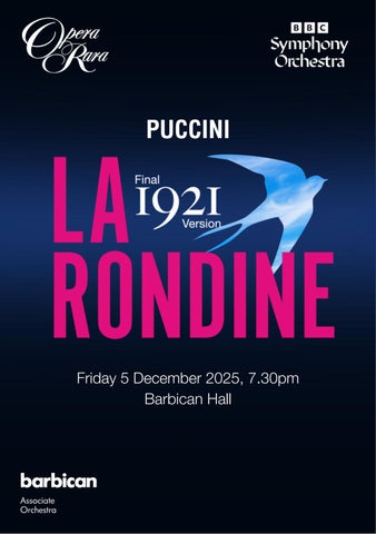 Join us at Bechstein Hall for this rare chance to hear recently discovered music by one of opera’s greatest composers Tickets: £35 O P E R A - R A R A . C O M / E V E N T S