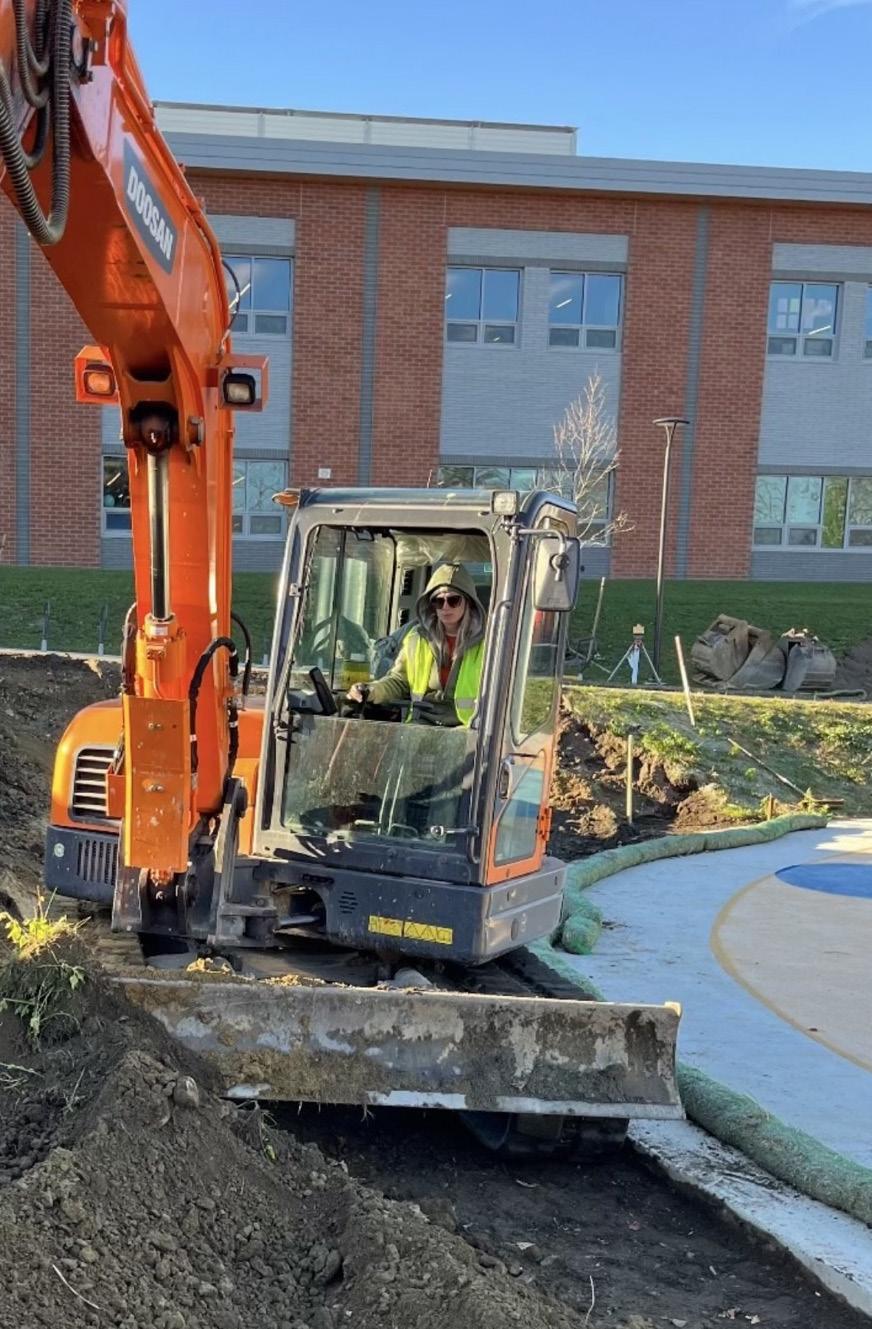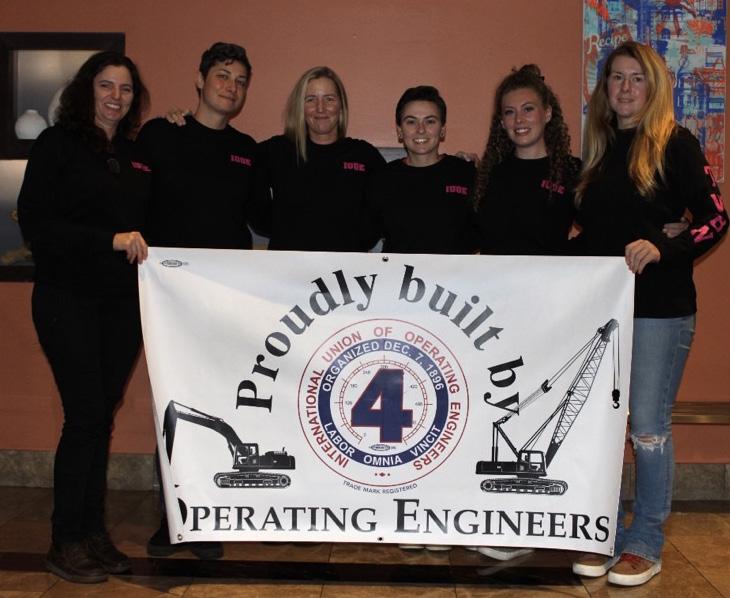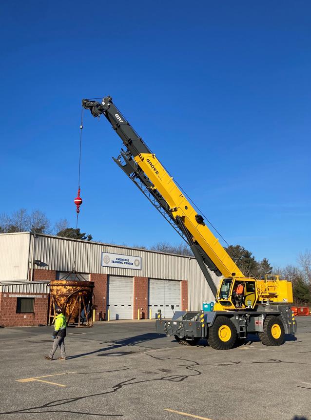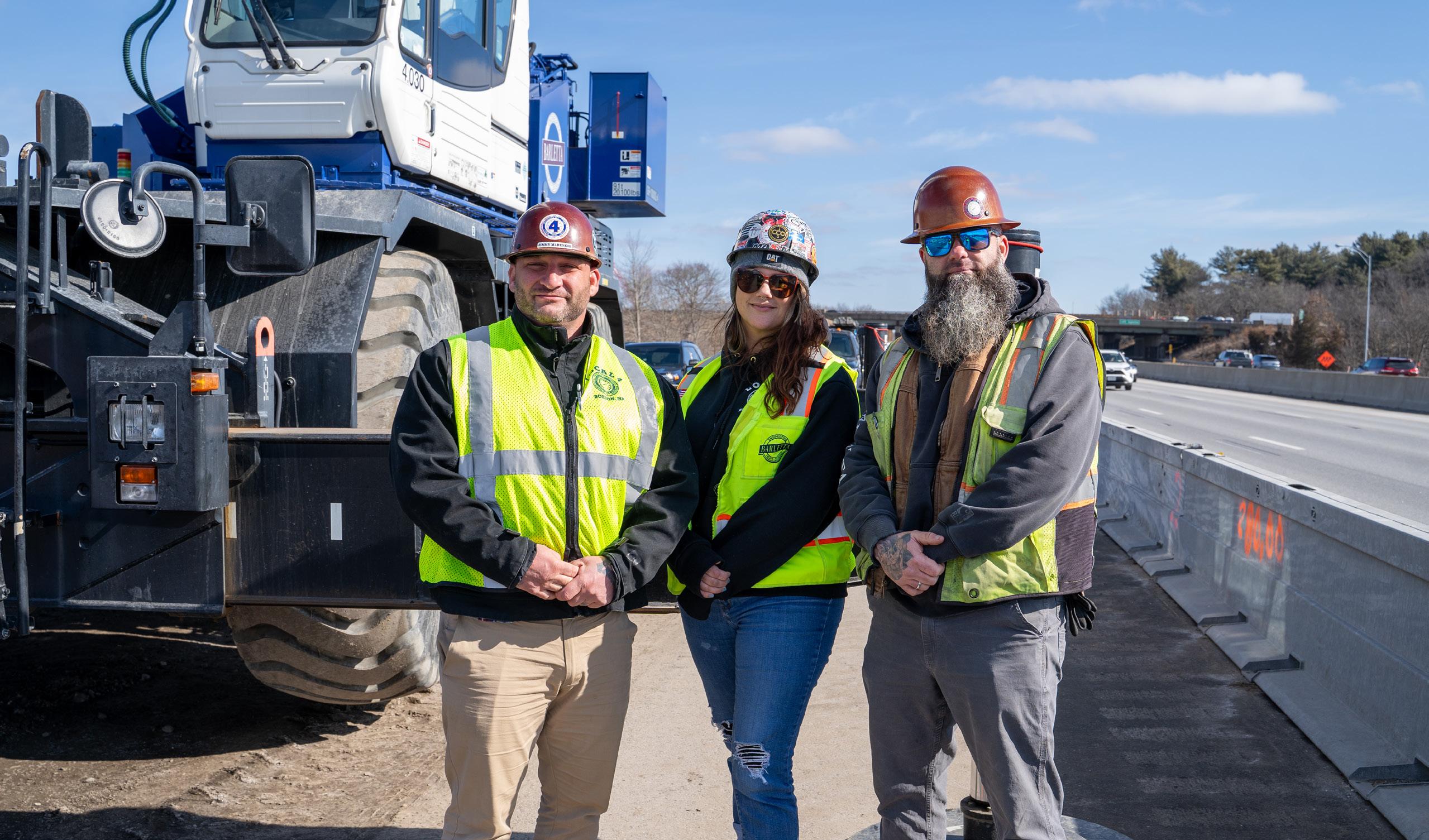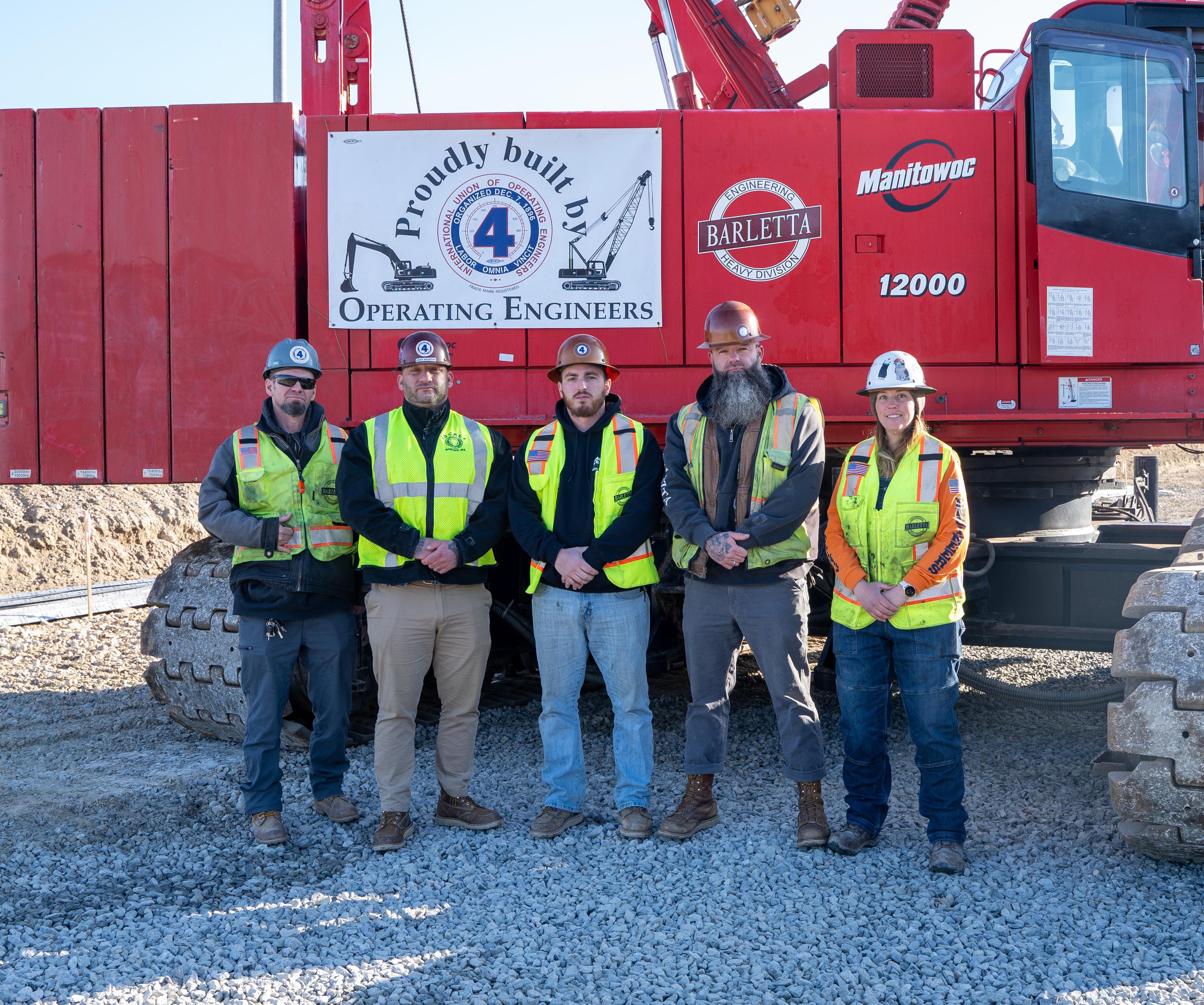 COVER: Left to right: Loader Operator Joel Laflamme, Business Representative James Marenghi, Crane Operator Matt Levins, Local 4 Steward Michael Cullen, and Apprentice Victoria Johnson on-site in Westborough.