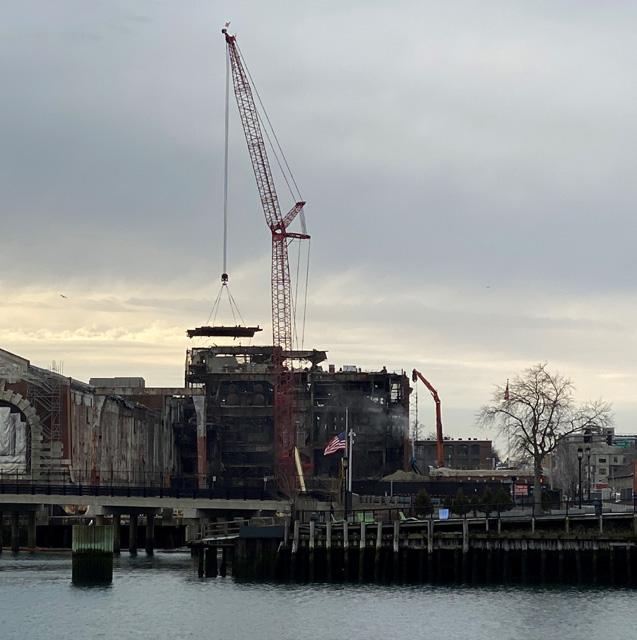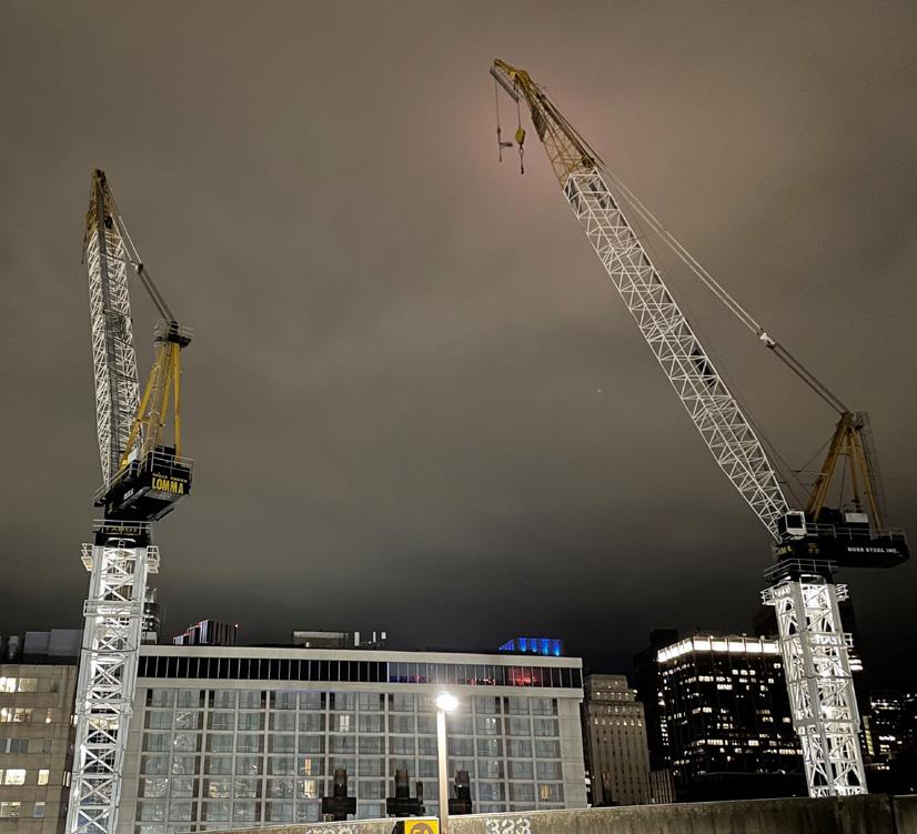 Hallamore’s crane handles the prefab walls. In Everett, Encore has a project that has run into permitting issues but should move forward with Derenzo doing the site, Coastal driving the piles, and Daniel Marr and Son doing the crane work for the pedestrian bridge. Next door, there are plans to demo the Everett power plant and potential plans for a soccer stadium but that still has some hurdles to get over.
