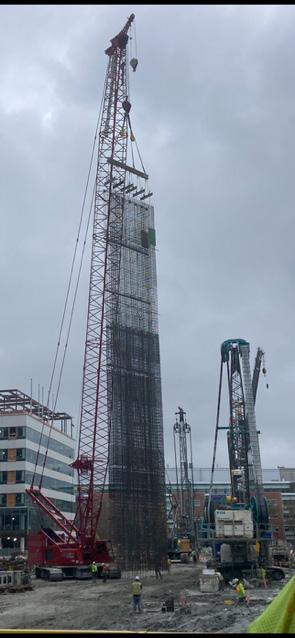 doing the concrete work. Trevi Icos wraps up the foundation at Huntington Towers; W.L. French will begin the excavation. This will be a 34-story residential highrise with retail on the bottom two floors. The Landmark Center project continues to provide jobs for our membership. This is a development in the Fenway neighborhood that currently has two tower cranes erecting steel, two outside hoist, site, utility, and landscaping to come. Simmons College has started the construction of its Living and Learning Center. This will tie the campus together and is scheduled to be completed in 2026. JDC Demolition finished taking the old parking garage down, Allied Pile drove the sheets, and J. Derenzo is doing the excavation. In Allston, Harvard University continues to develop its land. Three buildings are underway with several of our signatories working on them. The last piece of precast came down at the Congress Street Garage. That was a very complex job that took years, unfortunately, we lost Brother Peter Monsini on that job, may he rest in peace. Innovation Center in the Seaport is set to start shortly, and the demolition is complete with Trevi Icos and W.L. French set to go in. We have a number of large jobs that are currently under construction and more that have already been approved by the city.