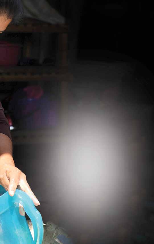 elderly woman used to carry heavy containers of water from a nearby river to provide for her family’s needs. But her new system features collection gutters, piping, and a filter for a new 3,000-liter water storage tank. Now, Magdalina and her grandchildren can easily get water from a faucet right at the bottom of the tank.