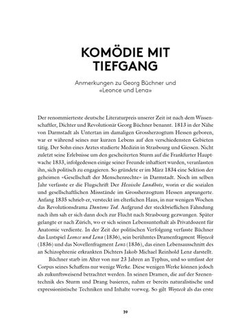 KOMÖDIE MIT TIEFGANG Anmerkungen zu Georg Büchner und «Leonce und Lena»