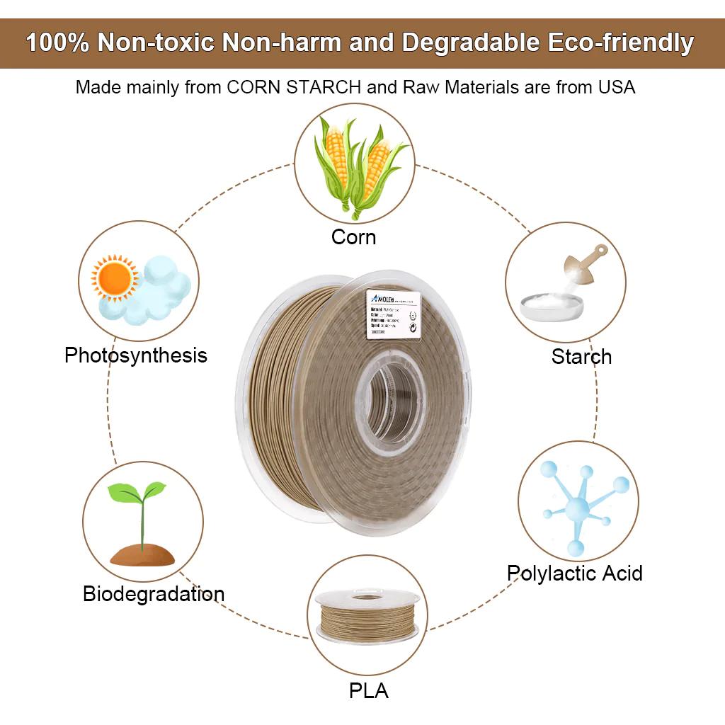 •Thermoplastic – PLA is a thermoplastic, so it’s moldable and malleable when heated to its melting temperature. It can be solidified and injection-molded into various forms making it a terrific option for food packaging and 3D printing.