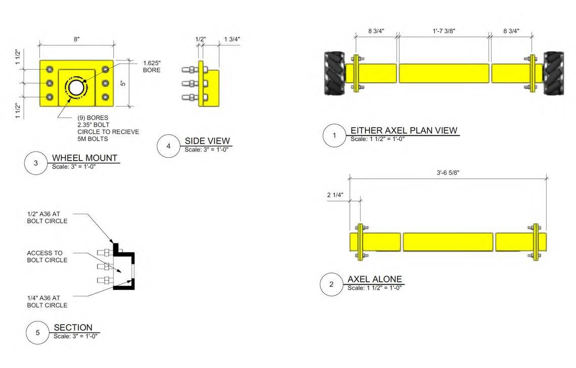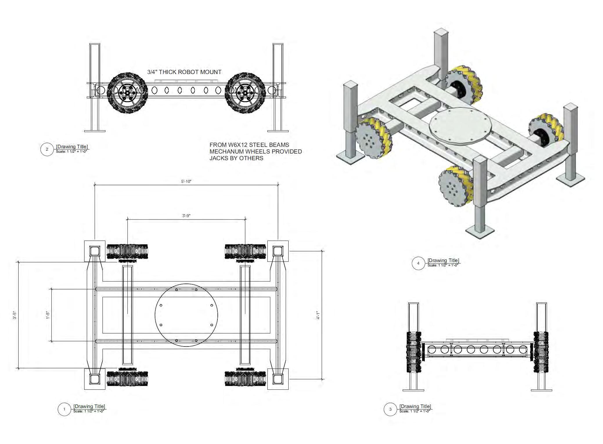 Scale:3/4"=1'-0" 3 FRONTELEVATION Scale:3/4"=1'-0" 4 PLANVIEW Scale:3/4"=1'-0" 5 BOT DESIGN SHEET FOR: FOUNDATION BOT FROM MANLIFT UNDERCARRIAGE FOR PRINTING FOUNDATION FORMS OFFROAD Licensed Professional Architect AR-9859 exp.4/30/2024