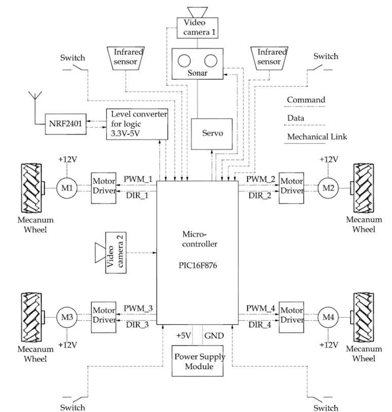 2.Motor parameter measurement circuit: The motor current sampling resistor is a constantan resistor, one end is connected to the bottom of the H Bridge, and the other end is connected to GND. The voltage and current signal conditioning circuit is built with LM324 operational amplifier. After the voltage is followed, it is sent to the MCU, and the MCU has a built-in 10Bit A/D converter for A/D sampling. The chassis temperature monitoring uses the digital temperature chip DS18B20, which is attached to the surface of the motor shell to monitor the temperature parameters in real time and send them to the MCU.