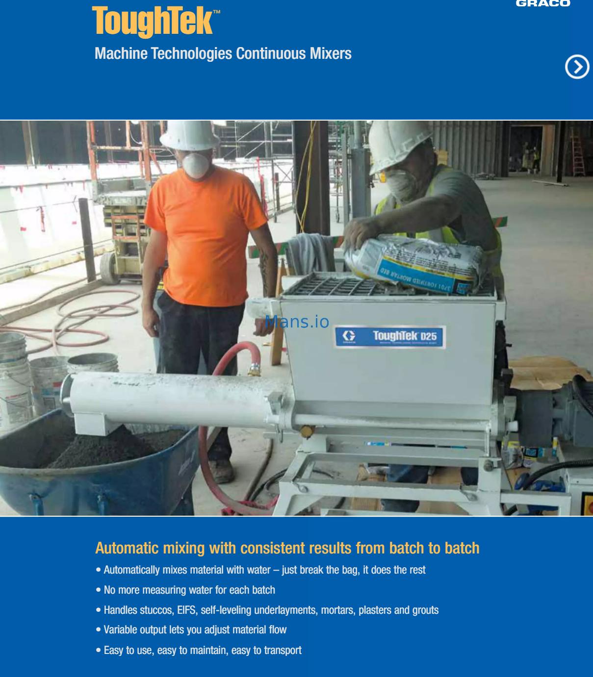 Using a Graco continuous mixer to feed the hopper of your concrete pump, you’re able to handle large volumes of cementitious materials, increasing productivity and improving your bottom line.