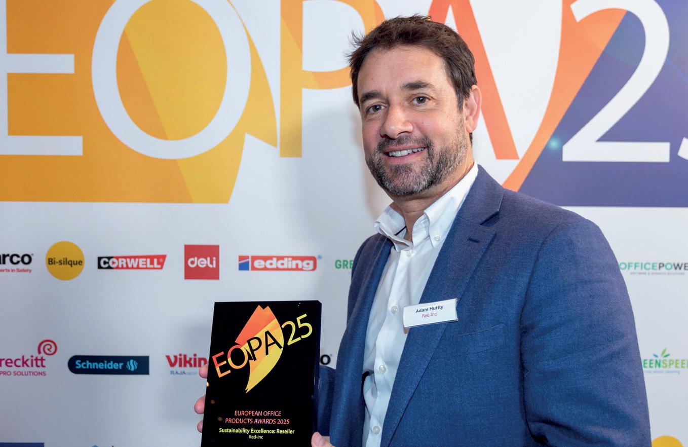 Adam Huttly is an individual who lives and breathes sustainability. His conviction to ‘do the right thing’, combined with years of hard work, has earned his company, UK-based Red-Inc, numerous certifications and accolades – including the Sustainability Excellence award in the Reseller category of the 2025 European Office Products Awards.
