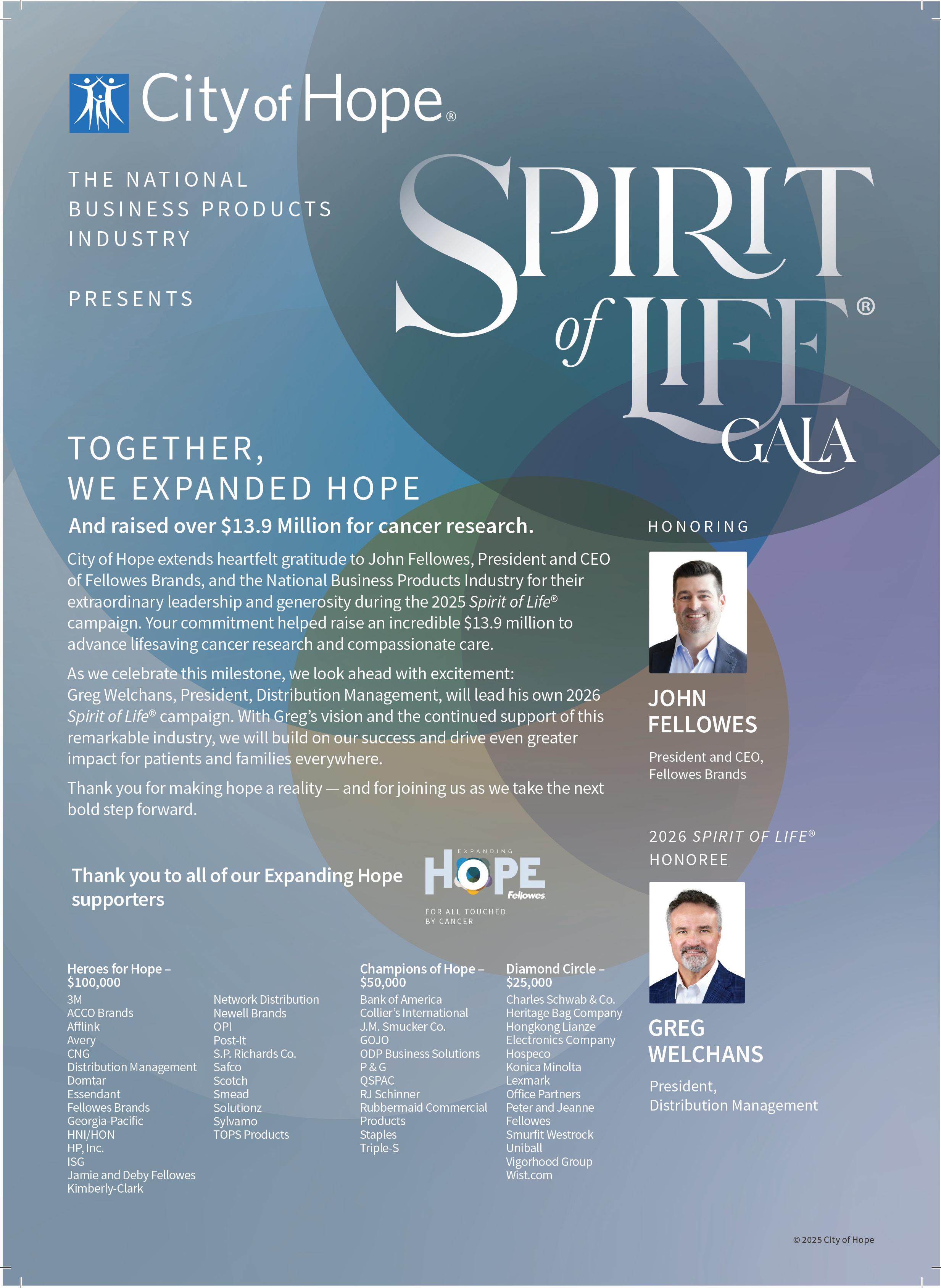 Returning to the iconic Grand Ballroom at Navy Pier in Chicago, City of Hope’s Spirit of Life Gala concluded John Fellowes’ 2025 Expanding Hope campaign. It did so in great style, as the National Business Products Industry (NBPI) presented the cancer and diabetes research organisation with a cheque for $13.9 million.