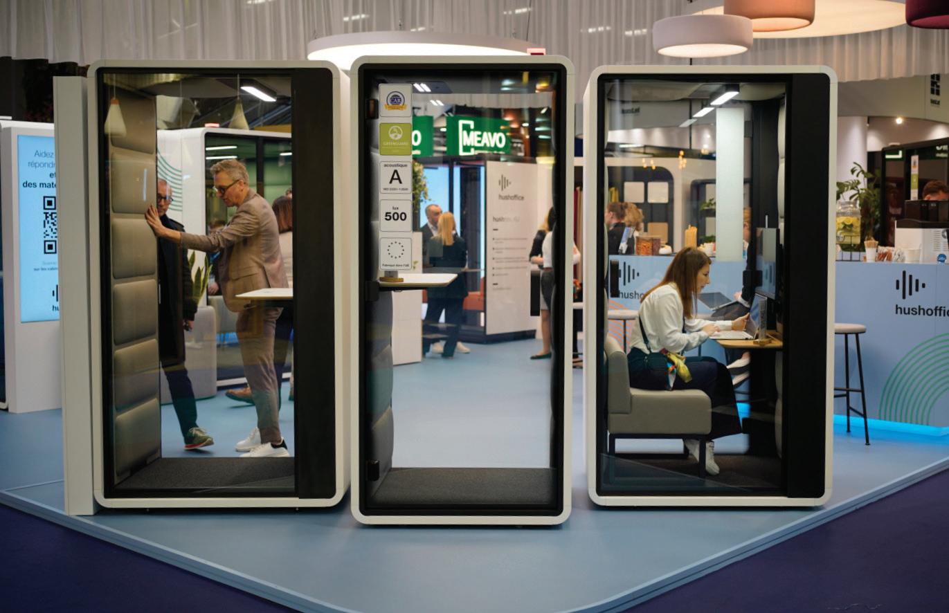 Also evident was the popularity of soundproof pods and booths; there was a surprisingly large number of suppliers displaying these types of products, ranging from phone box-sized individual spaces to larger meeting areas kitted out with furniture and the latest audiovisual technology.