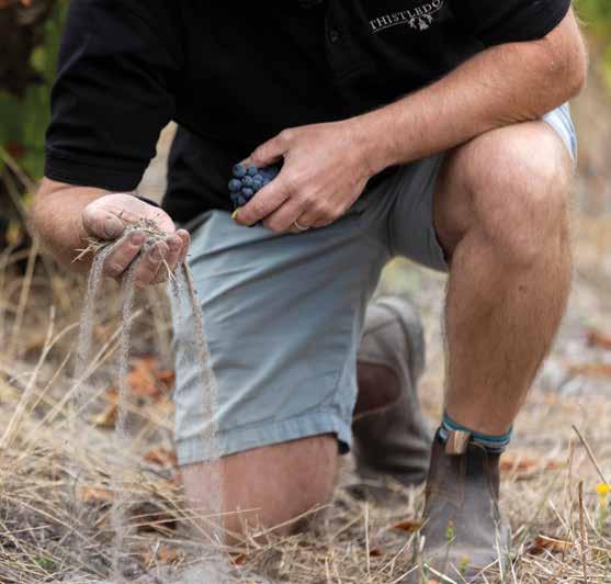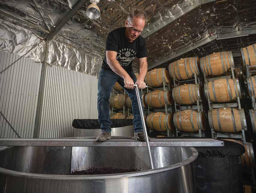 signature variety”. He fights for old-vine fruit from the best growers, then picks it (as he puts it) “on the way up”: as it approaches its ripening apogee; natural wild-yeast ferments in concrete eggs are a key part of his non-interventionist winery philosophy, crafting wines with “a lithe energy and silky texture”. That same approach -- maximum respect for the raw materials to maximize pleasure and intrigue for the drinker –characterizes his work with other varieties, too, like Cabernet, Shiraz and Riesling.