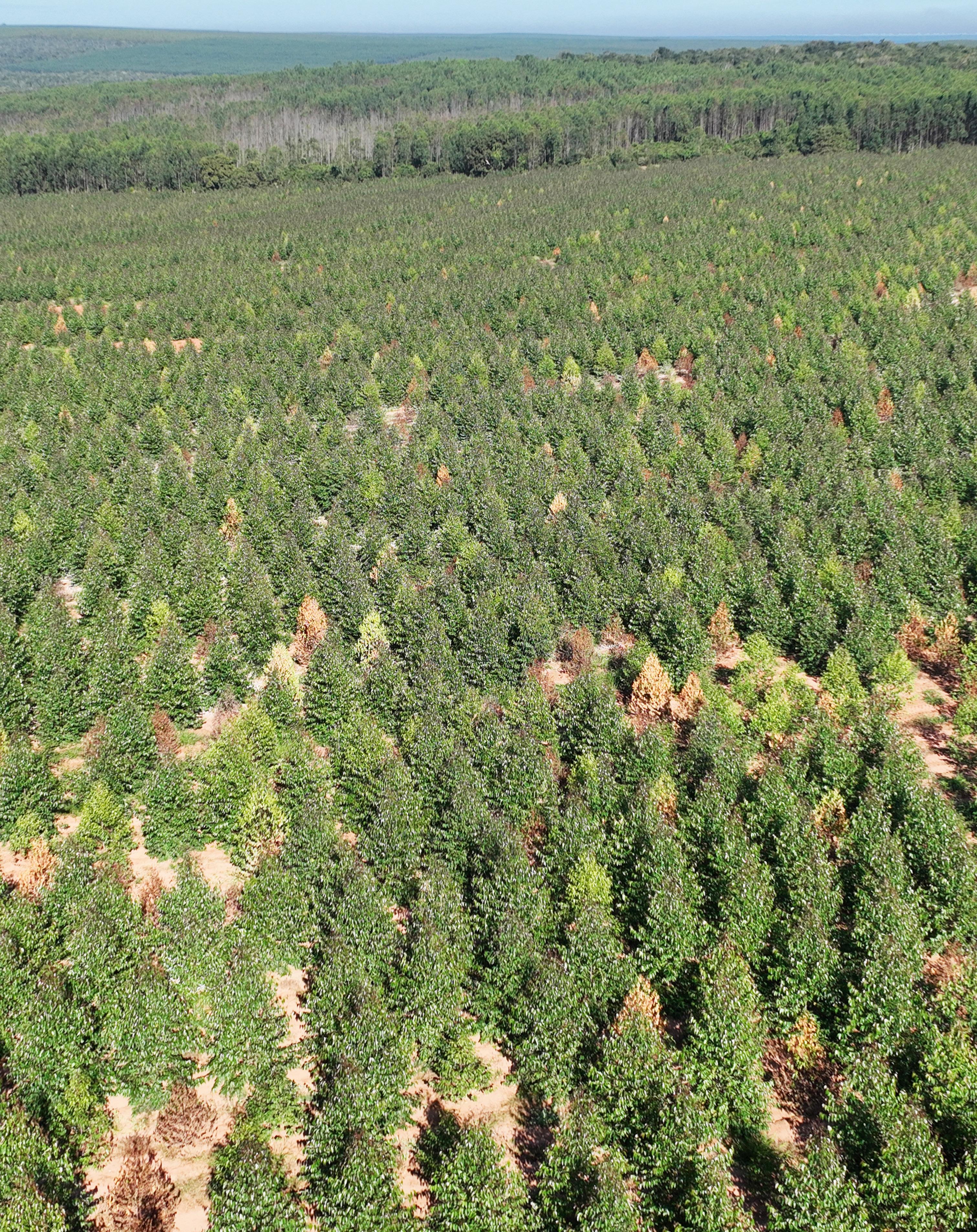 domínio generalizado de um reduzido número de espécies de crescimento rápido, em grande parte pinus, eucaliptos, acácias e álamo, é um agravante no contexto florestal. A utilização de agentes de controle biológico é a medida mais eficaz para o controle de pragas e doenças.