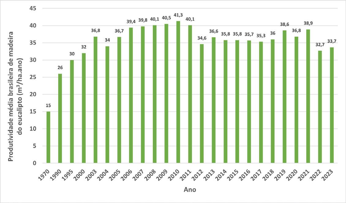 Nos últimos nove anos (2013 a 2023), segundo o Relatório Anual 2024 do IBÁ, a área de florestas plantadas no Brasil aumentou de 7,0 milhões de hectares (Mha) para 10,2 Mha, representando um acréscimo absoluto de 3,2 Mha, com uma taxa média anual de expansão de aproximadamente 3,51%.