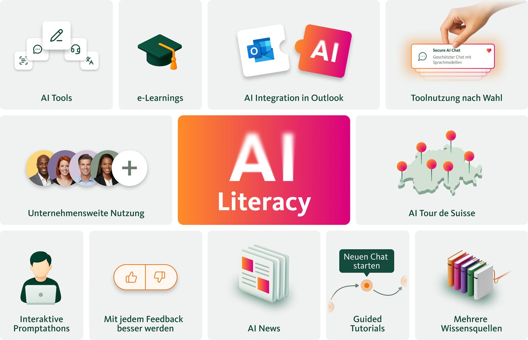 für die Übermittlung von Best Practices und Erfahrungen. Es unterstützt die Mitarbeitenden dabei, AI-Technologien sicher und effizient in ihren Arbeitsalltag zu integrieren.