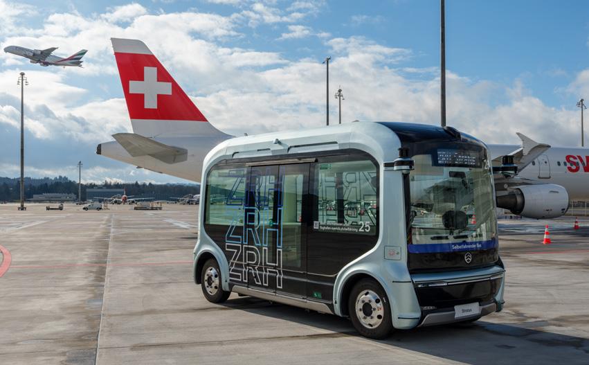 zügig voran. Diese Fahrten erfolgen zunächst ohne Fahrgäste. Nach einer Erprobungsphase könnten die Busse anschliessend auch mit Fahrgästen an Bord fahrerlos verkehren. Damit wäre Zürich der erste Flughafen Europas mit einem solchen Betrieb innerhalb des Flugbetriebsgeländes.