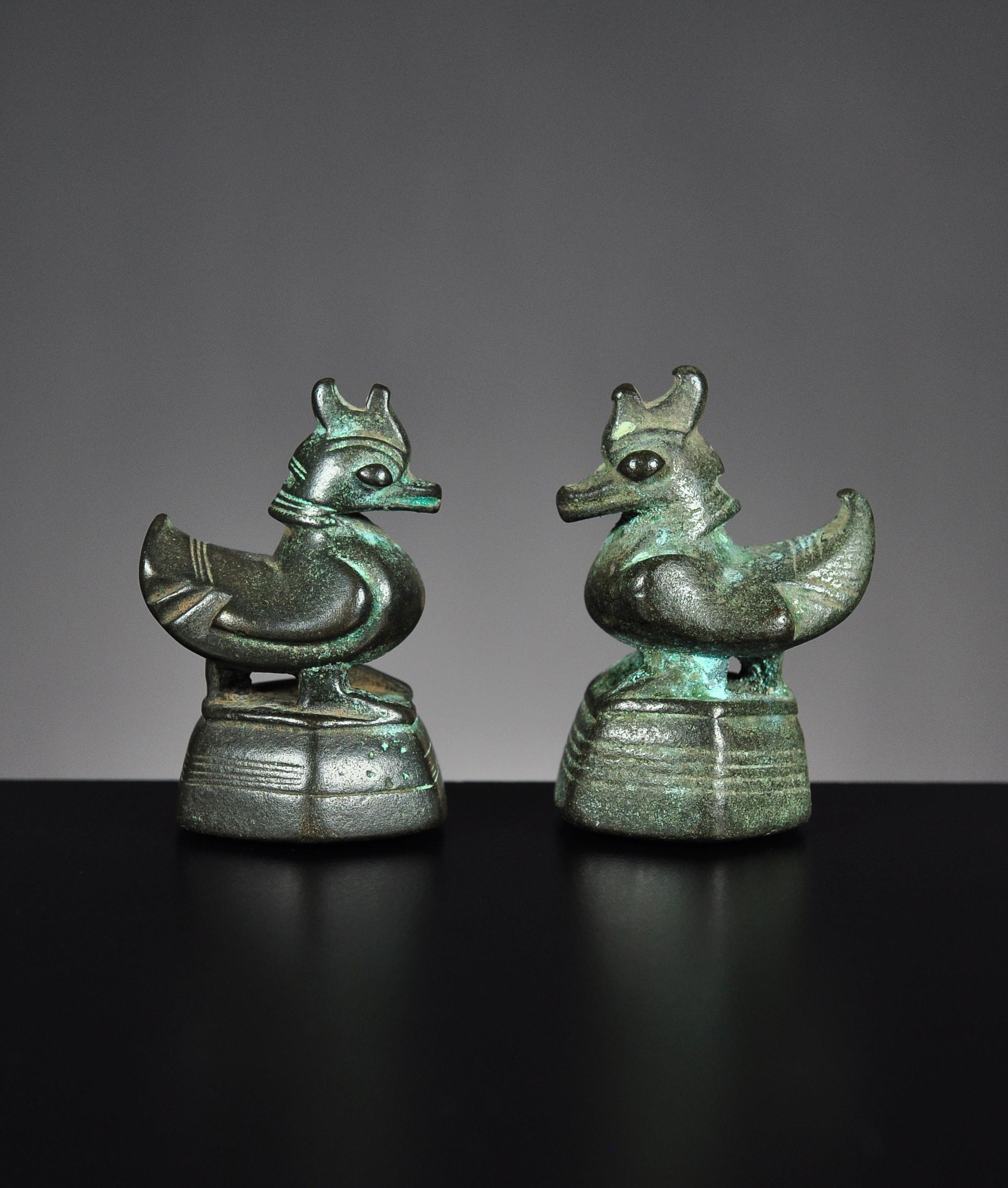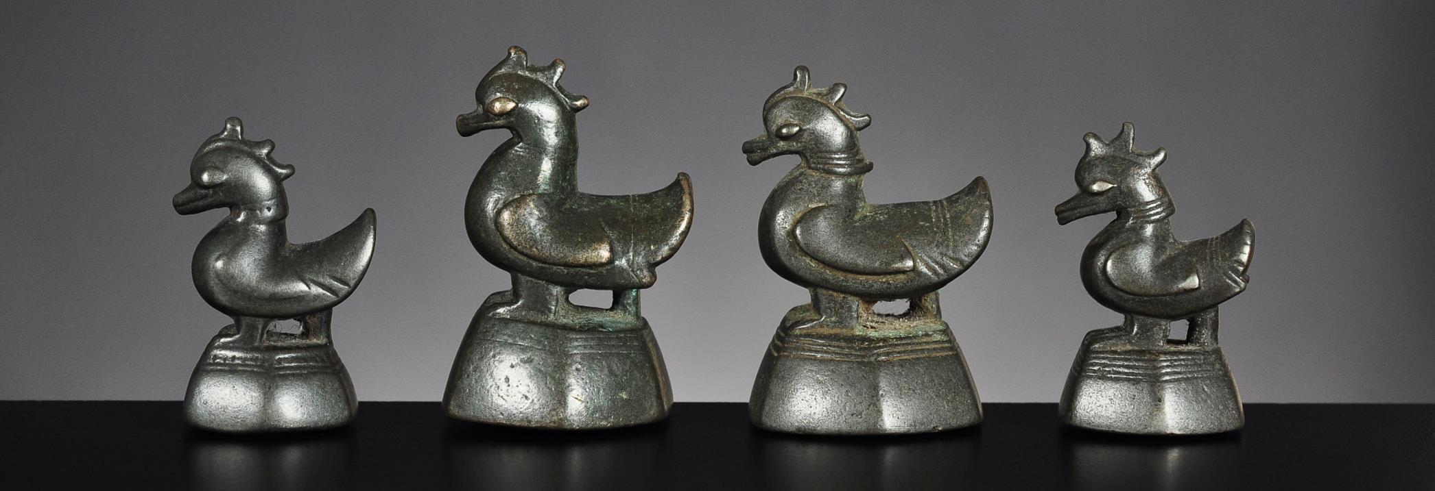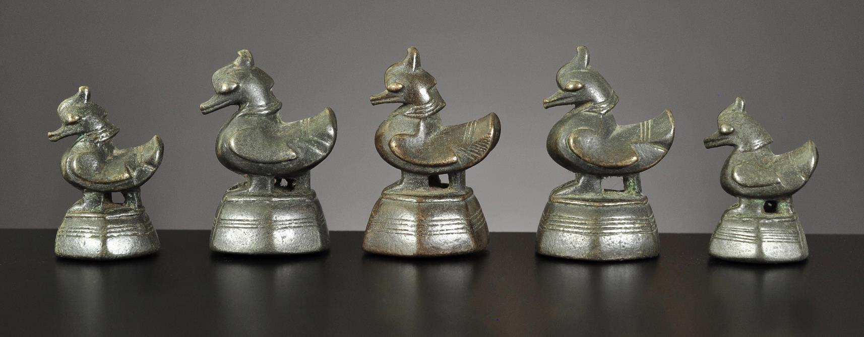 15 Hintha 4B1 and Hintha 4A1 (center), 19th century All five bird weights with attractive small heads and 6 rays or 6 dots mark. Please note the fine silvery and bronze patina.