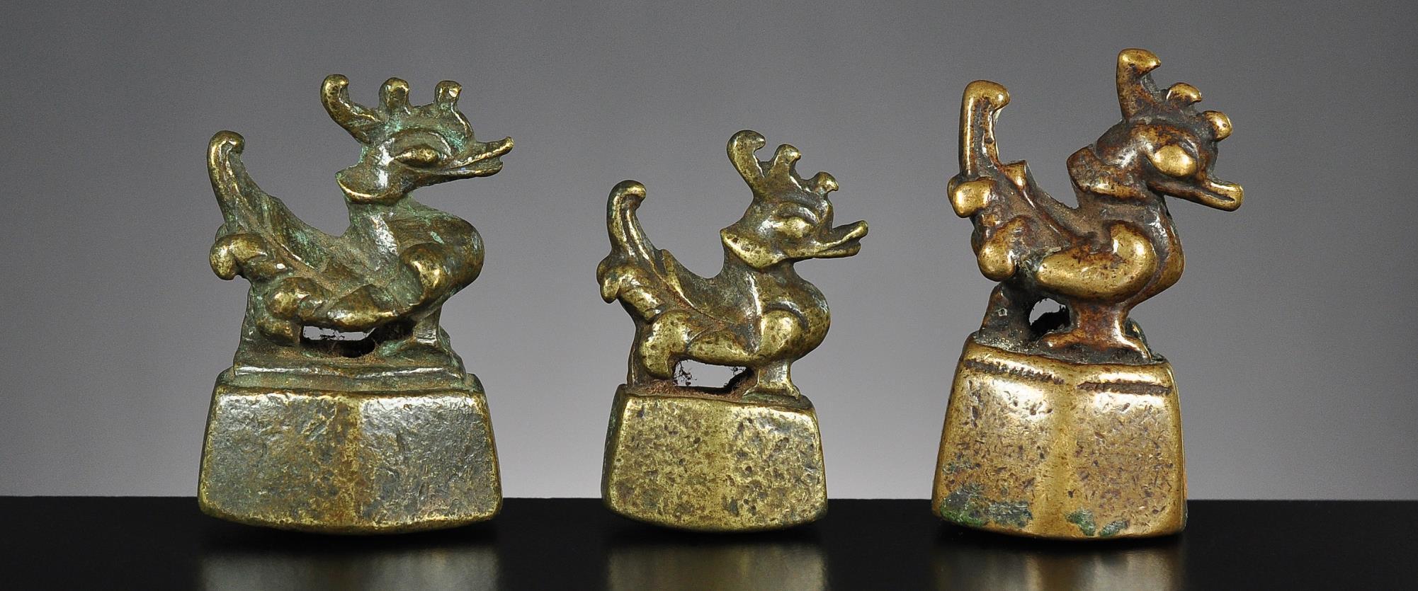 All three weights are very well and detailed elaborated with rich decoration. Even if they are weights of the same standard form, they clearly vary in many details. Precious collector’s items!