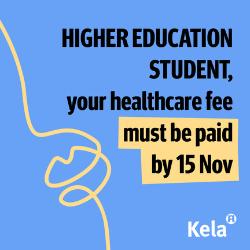 The due date for the healthcare fee for students in higher education is 15 November You can pay the fee handily in the OmaKela e-service (available in Finnish and Swedish only).