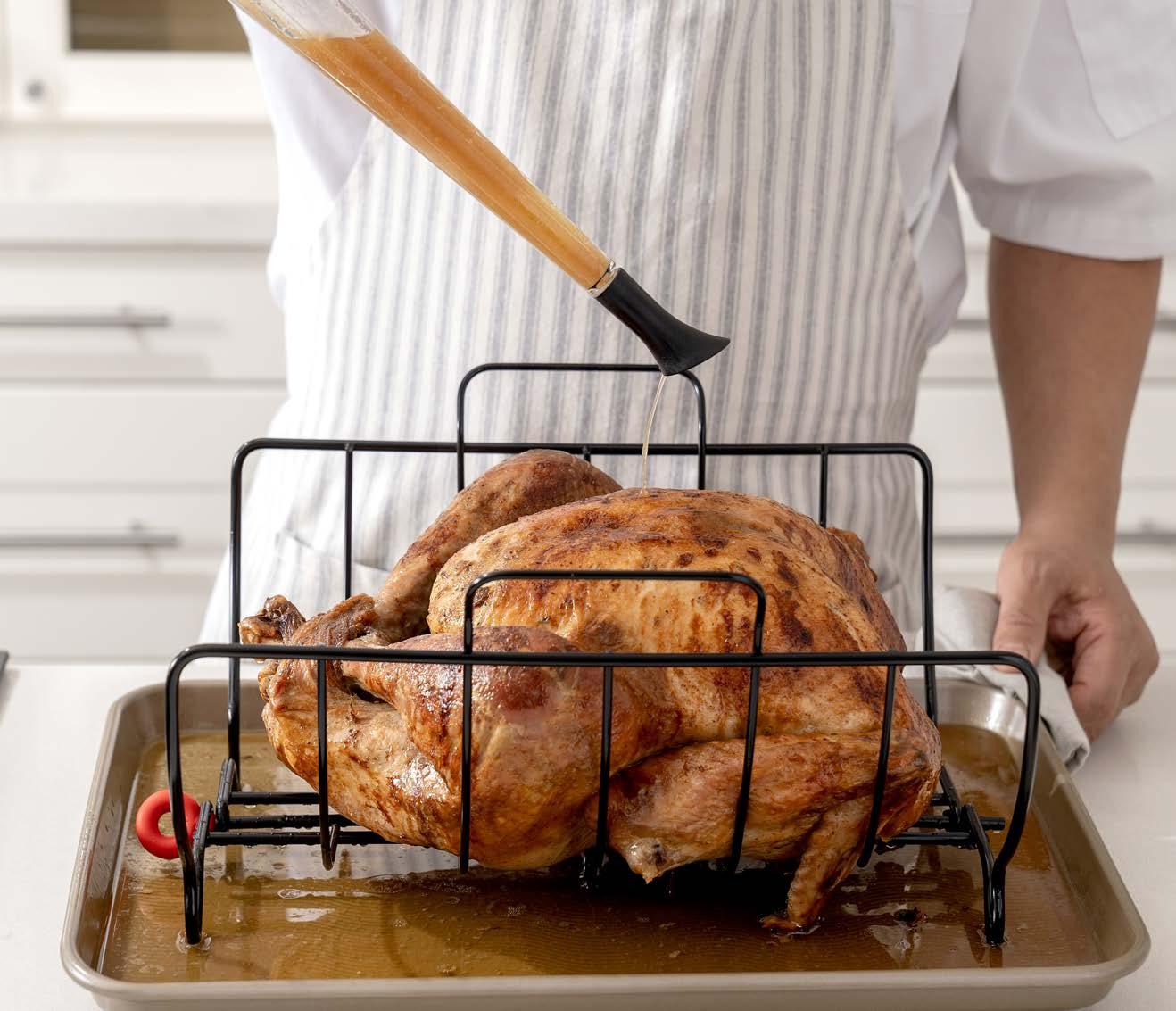 Featuring non-slip ends with feet, for grating stability on surfaces or when resting on a bowl