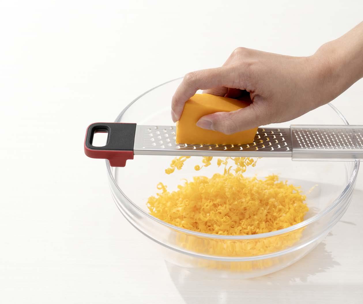 Perfect to create a fine, silky texture with dry or moist ingredients, such as citrus, hard cheese or ginger.
