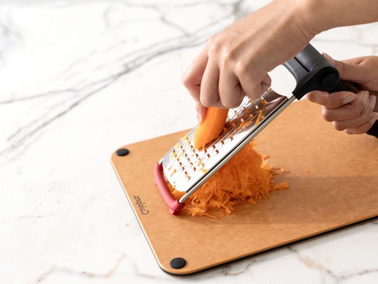 The Cuisipro Folding Grater, incorporating Surface Glide Technology™, enhances the grating process with an innovative design that achieves a harmonious balance between ease of use and maximum efficiency.