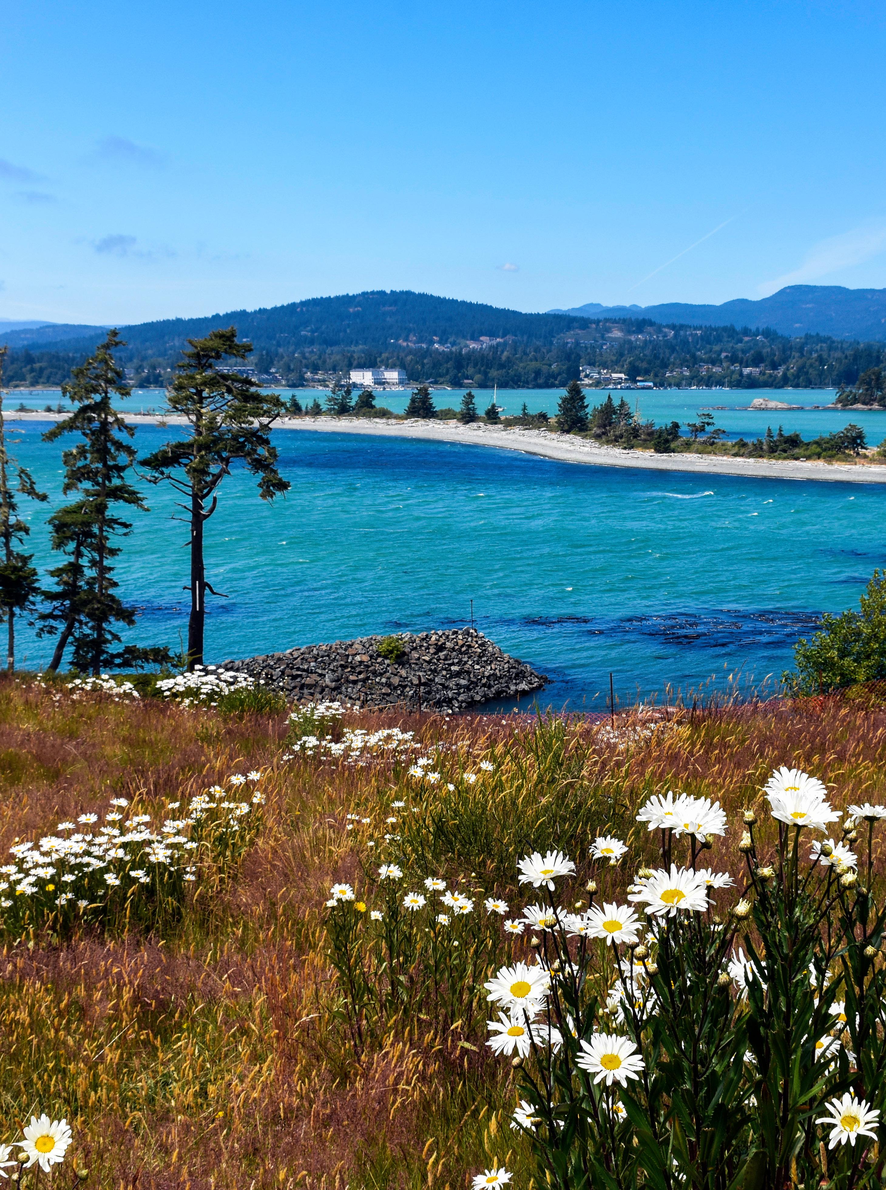 park is the way it makes you feel while sojourning through the trails. Walkers, joggers and cyclists follow the shore on the beach side, while flora and fauna flank along the west side of the walk. Aromas of sweet pea and wild rose permeate your senses from late spring through to early fall. Golden spires of yarrow line the paths to give a truly therapeutic aromatherapy experience with each breath. A deep connection to nature just happens here, the trail doesn’t recognize what kind of day you have had. Cool, salty sea air invigorates and recharges you with negative ions swirling on the ebb and flow of the bay