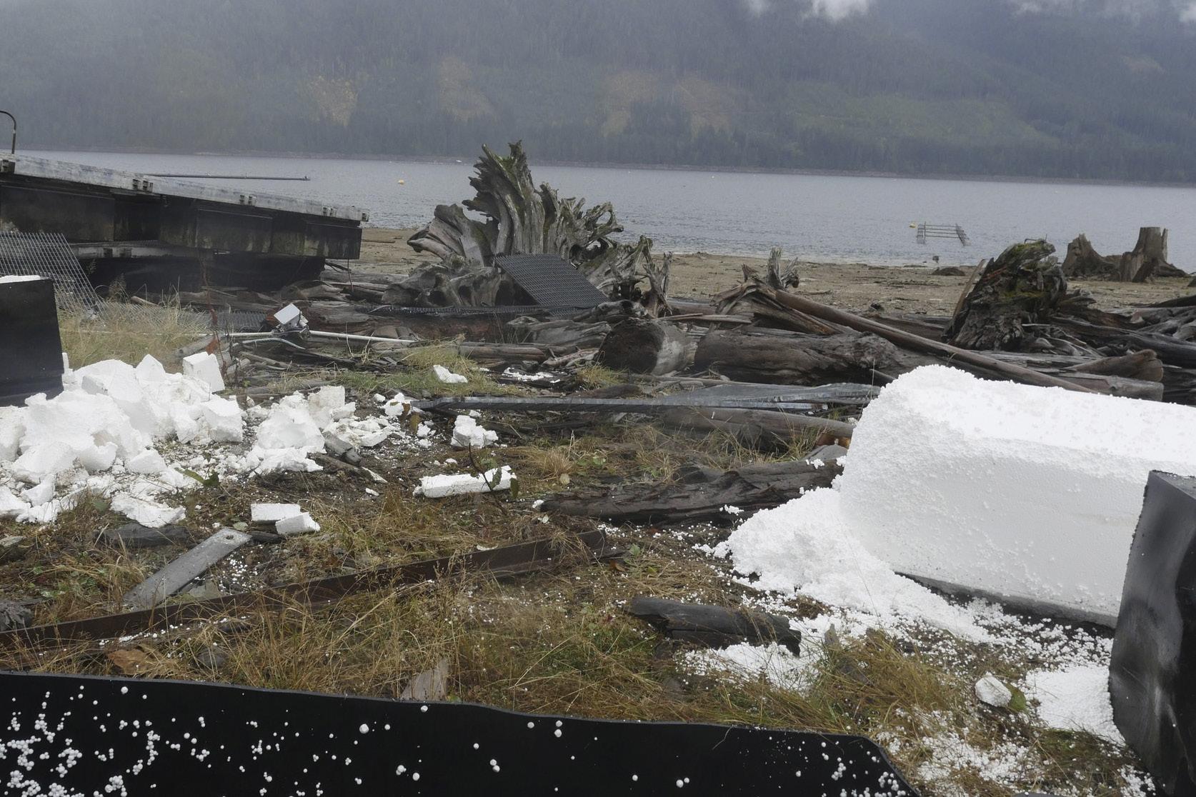 fibreglass semi-closed containment technology at the Lois Lake site. A year before buying the Lois Lake operation, AgriMarine hit the headlines when a pilot semi-closed floating fish tank farm near Campbell River was damaged in a storm, releasing thousands of farmed chinook salmon into the Salish Sea.