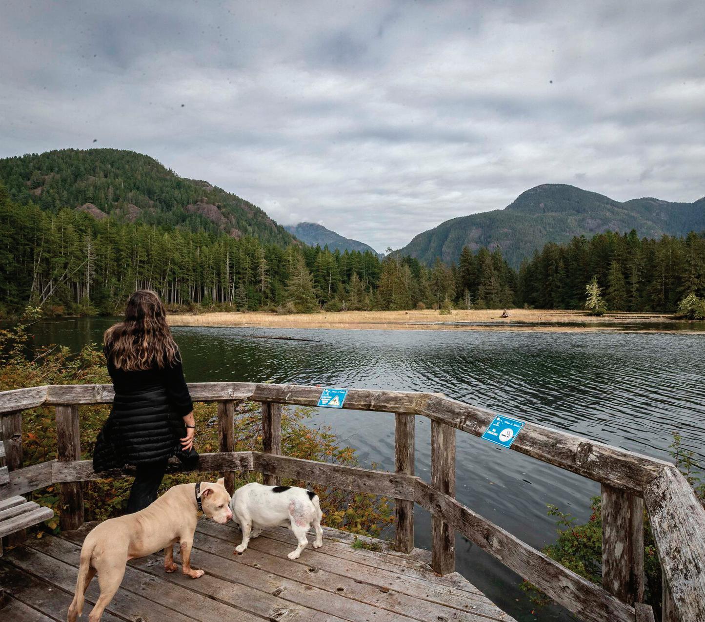 Lois is the first in a 57-kilometre-long, five-portage, eight-lake chain popular with paddlers, anglers and campers. It’s called the Powell River Forest Canoe Route and it travels through a working forest crisscrossed with logging roads and cut blocks. The tree stumps on Lois Lake’s shoreline tell the story. The lake was formed in the late 1940s following the construction of a dam to store water for a hydroelectricity power plant downstream in Stillwater, a rural community 20 kilometres south of Powell River.